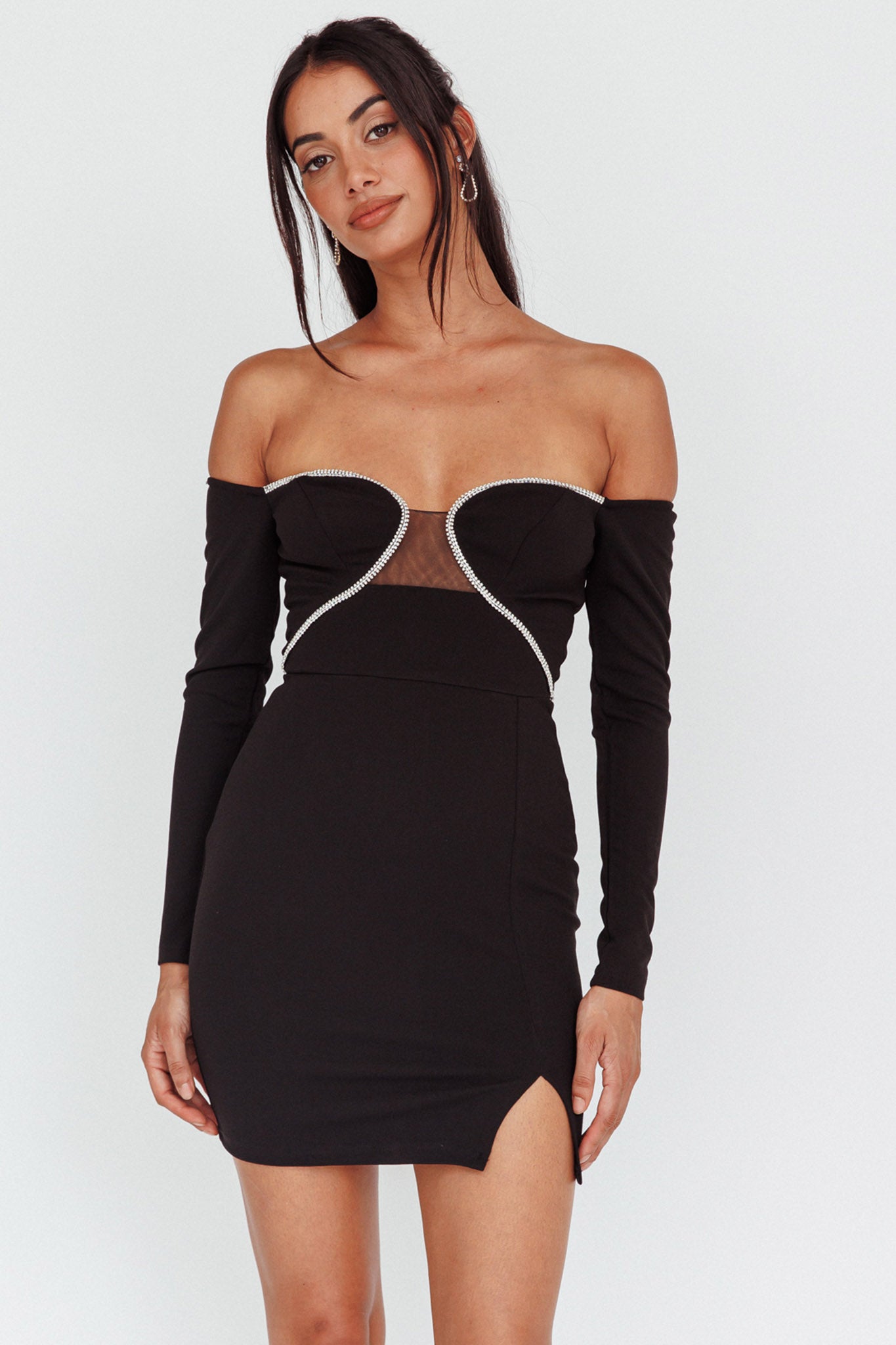 A-List Diamante Trim Long Sleeve Mini Dress Black
