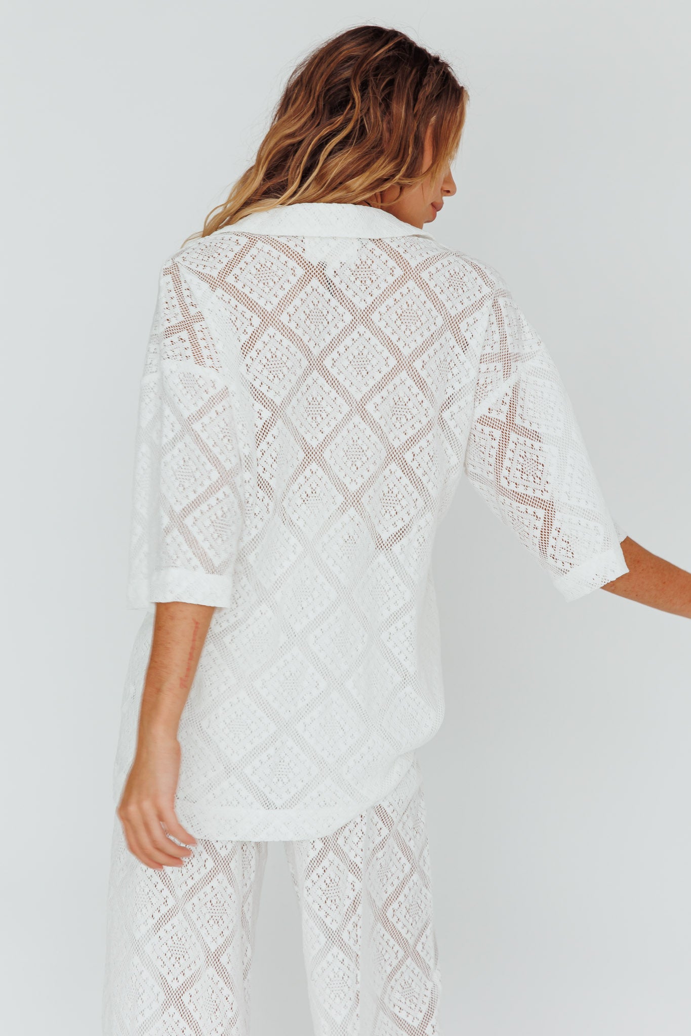 Abraya Lace Button-Up Shirt White