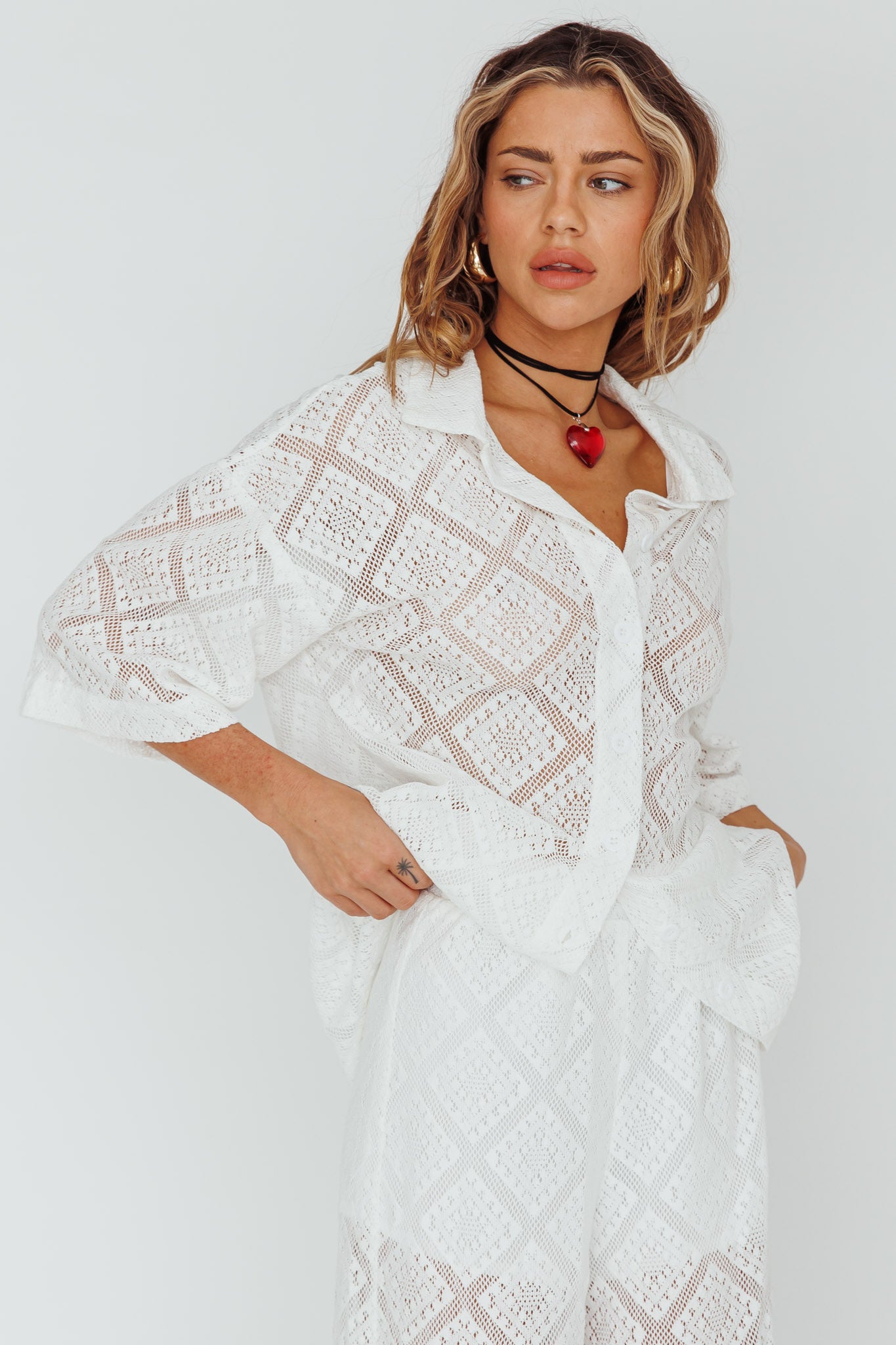 - White lace top