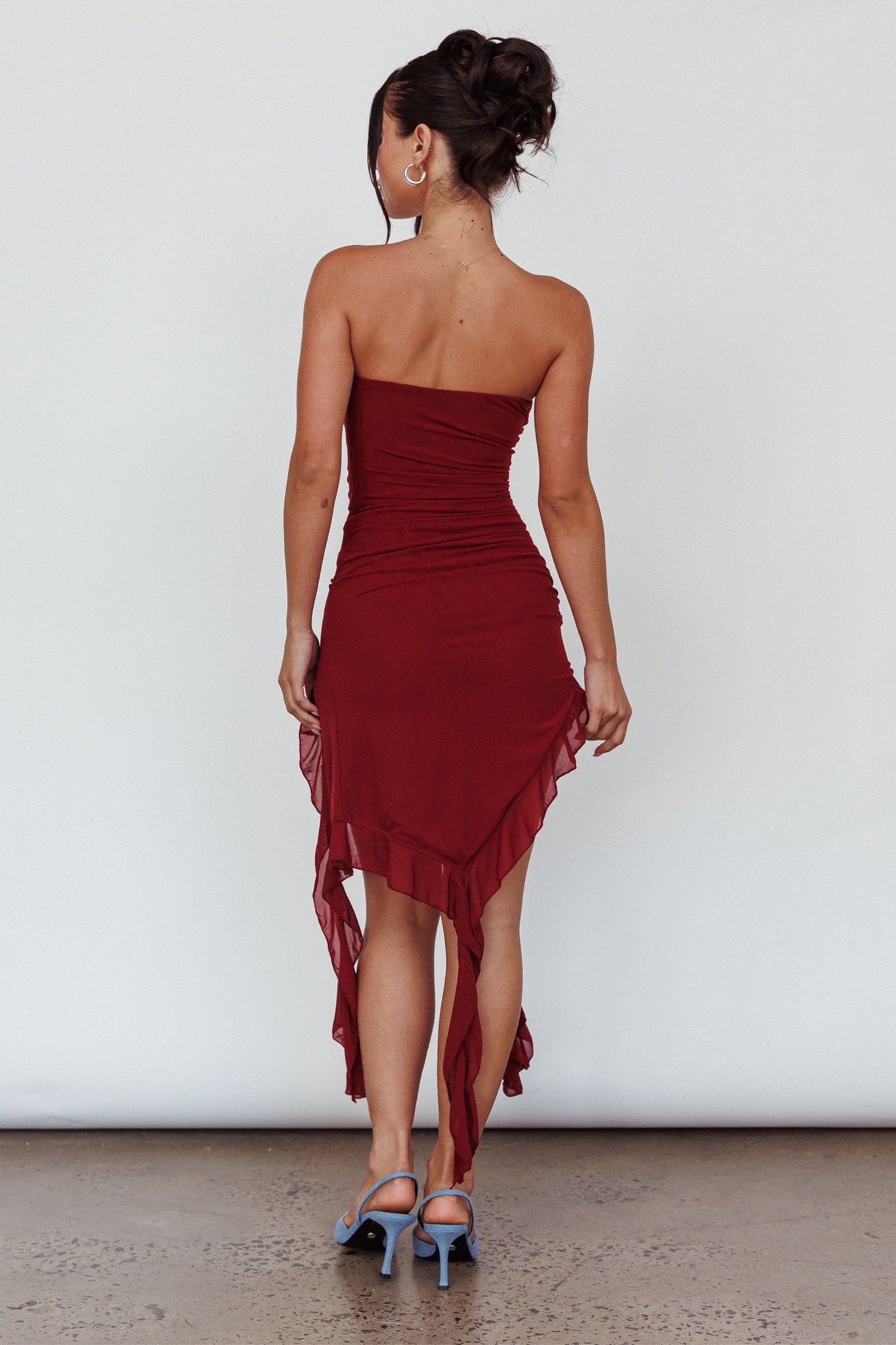 Steal the show in our hot After Party mini dress. We are obsessed with its ruffle detail and strapless cut, giving us all the throwback vibes. Team it with kitten heels and a baguette bag to complete the look.