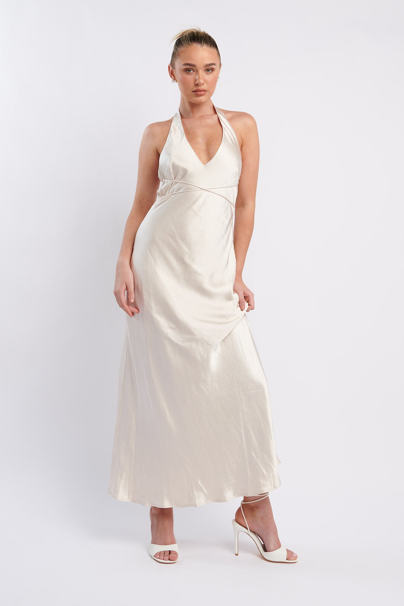 Alenni Halterneck V-Neck Midi Dress Champagne