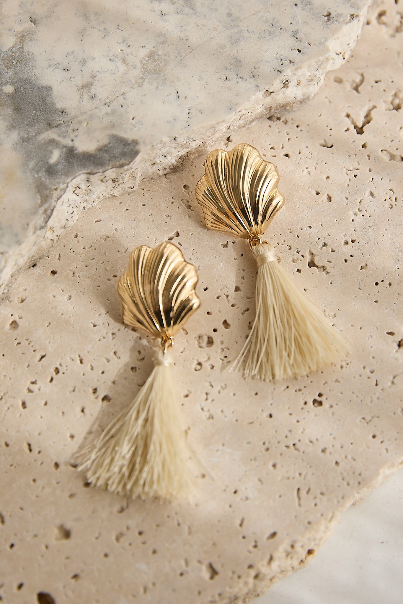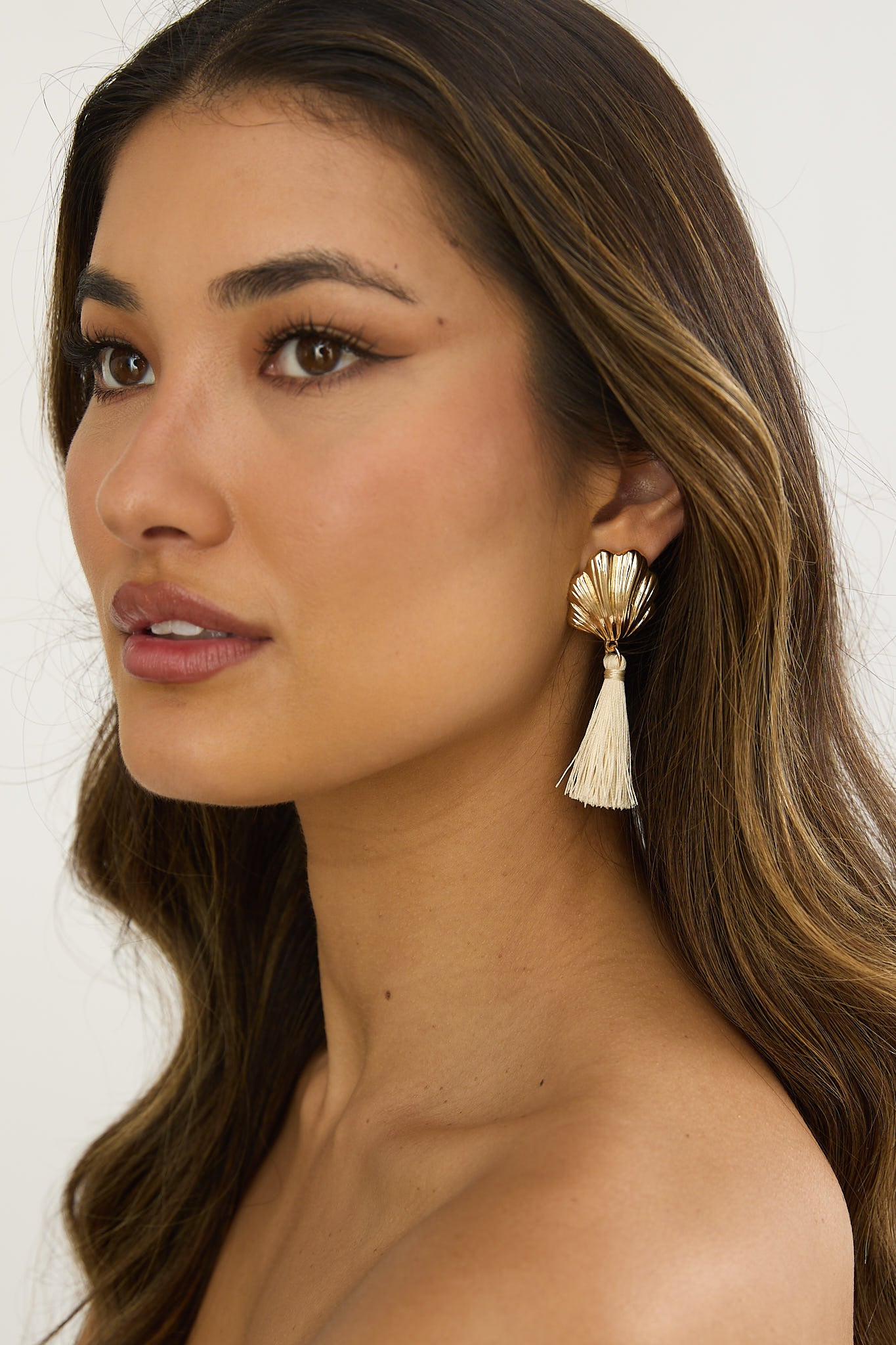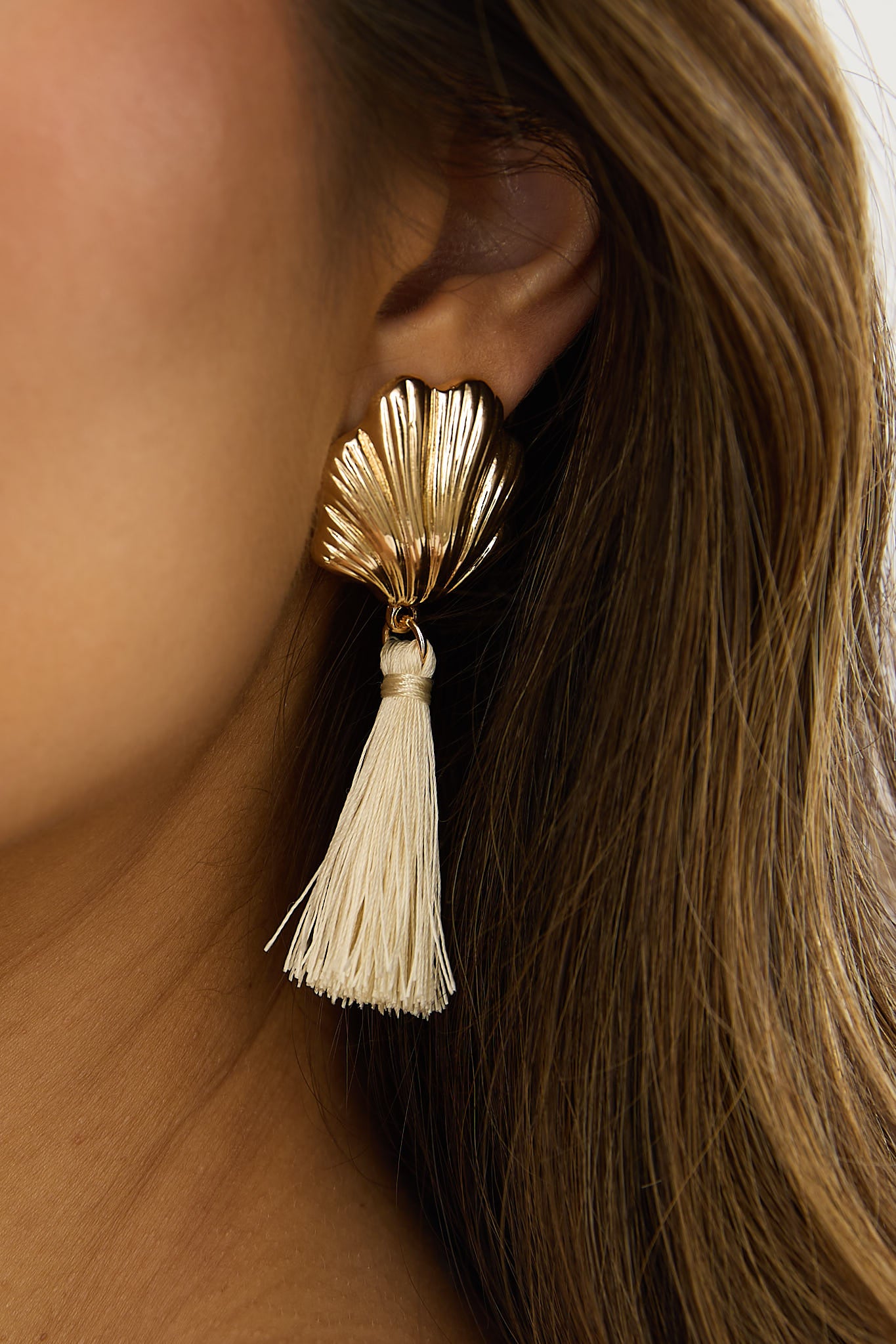 Alora Shell Tassel Earrings Gold/Ivory
