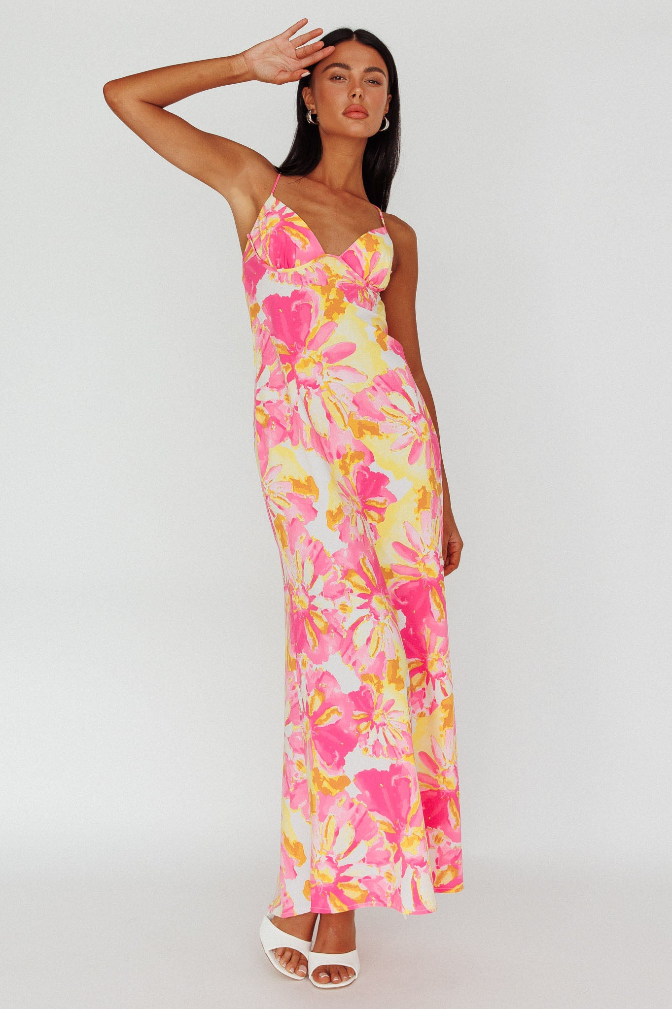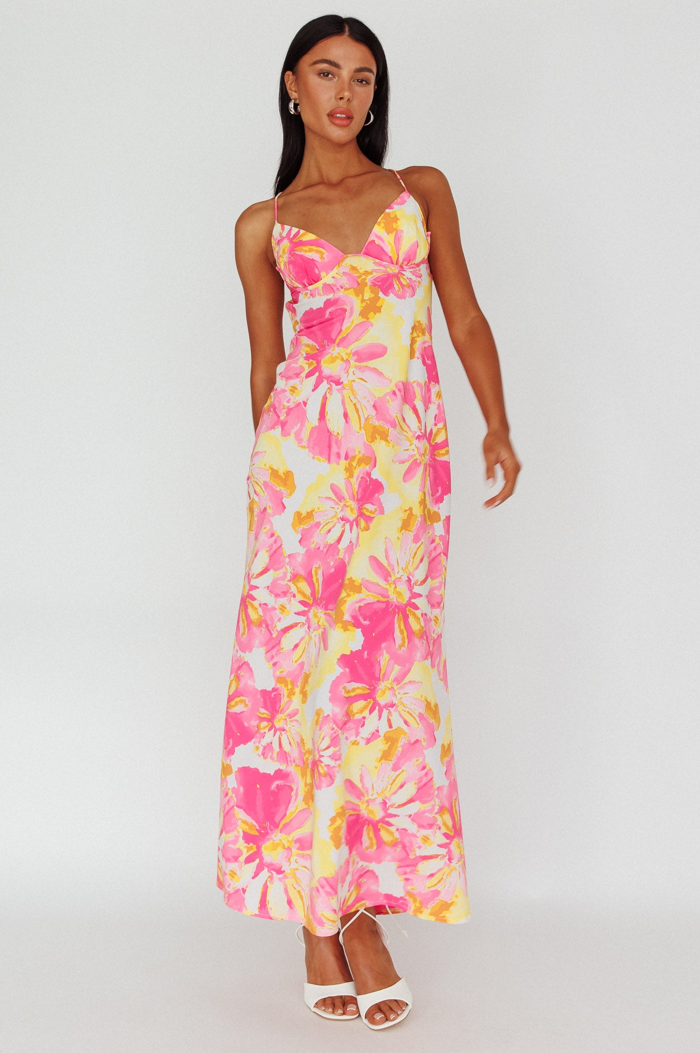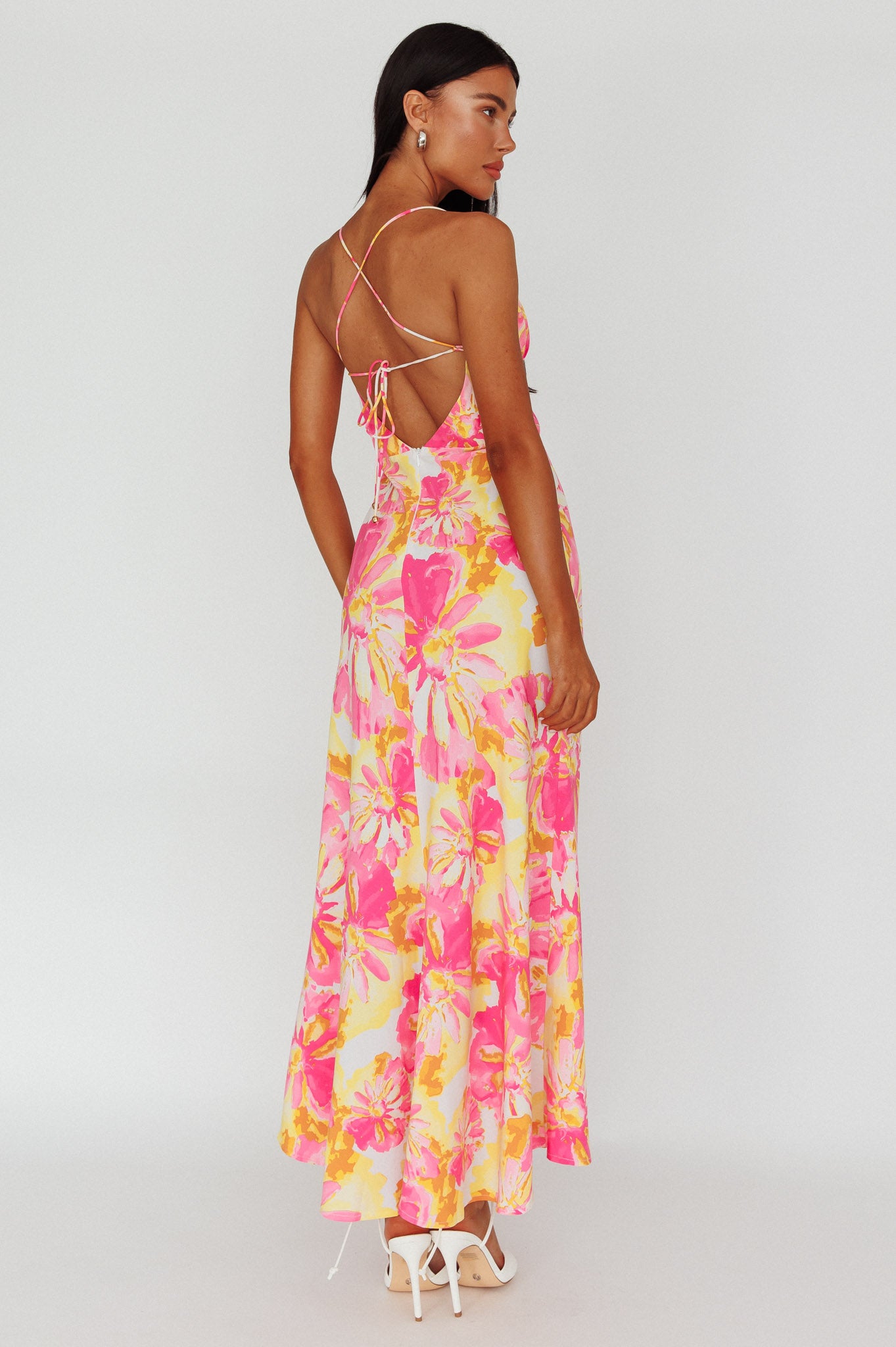 Alora Tie-Up Back Maxi Dress Flower Pink