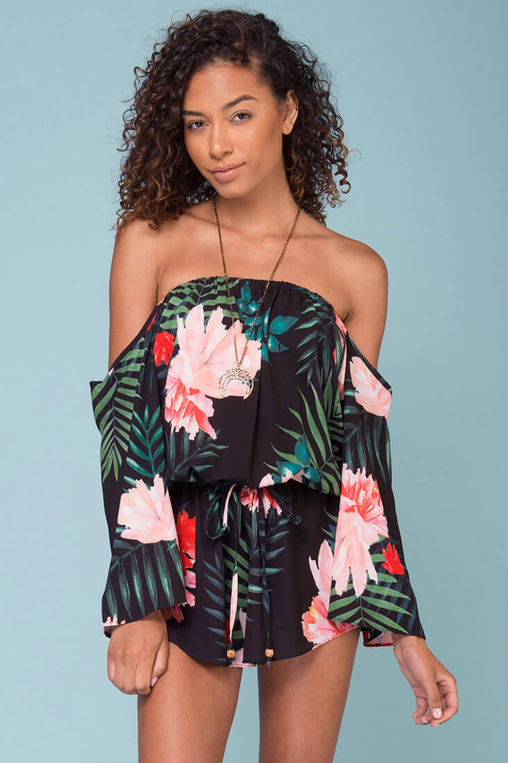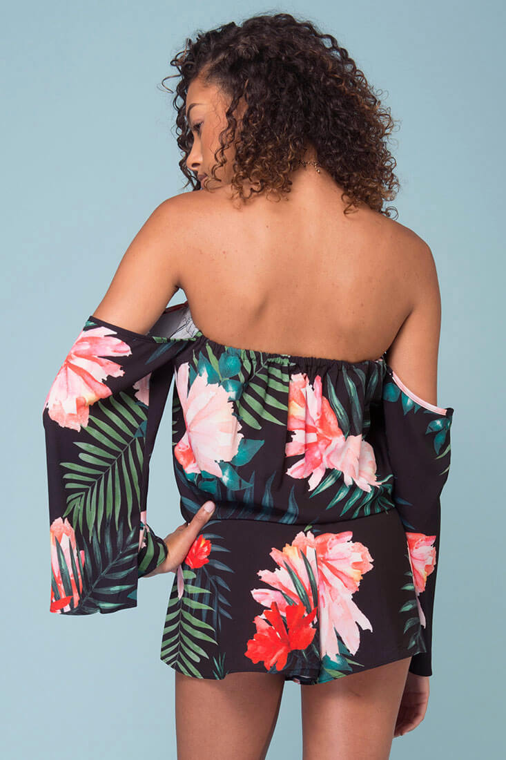 Alyssa Floral Off The Shoulder Romper Black