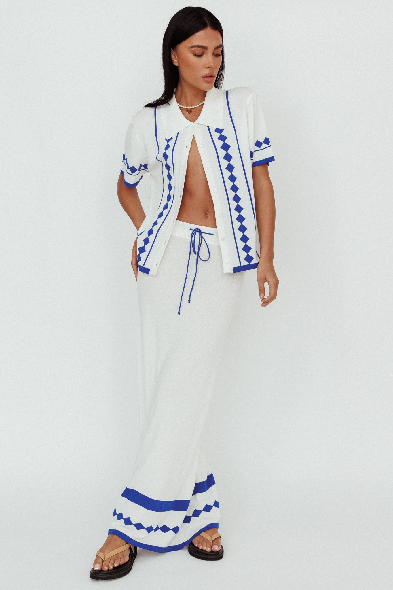 You'll feels like jetsetting for the weekend in our chic Amalfi Sun maxi skirt. We are in love with its lightweight knit and classy blue pattern detail. Perfect for lazy weekends teamed with its matching top and tan sandals for a look we are loving.