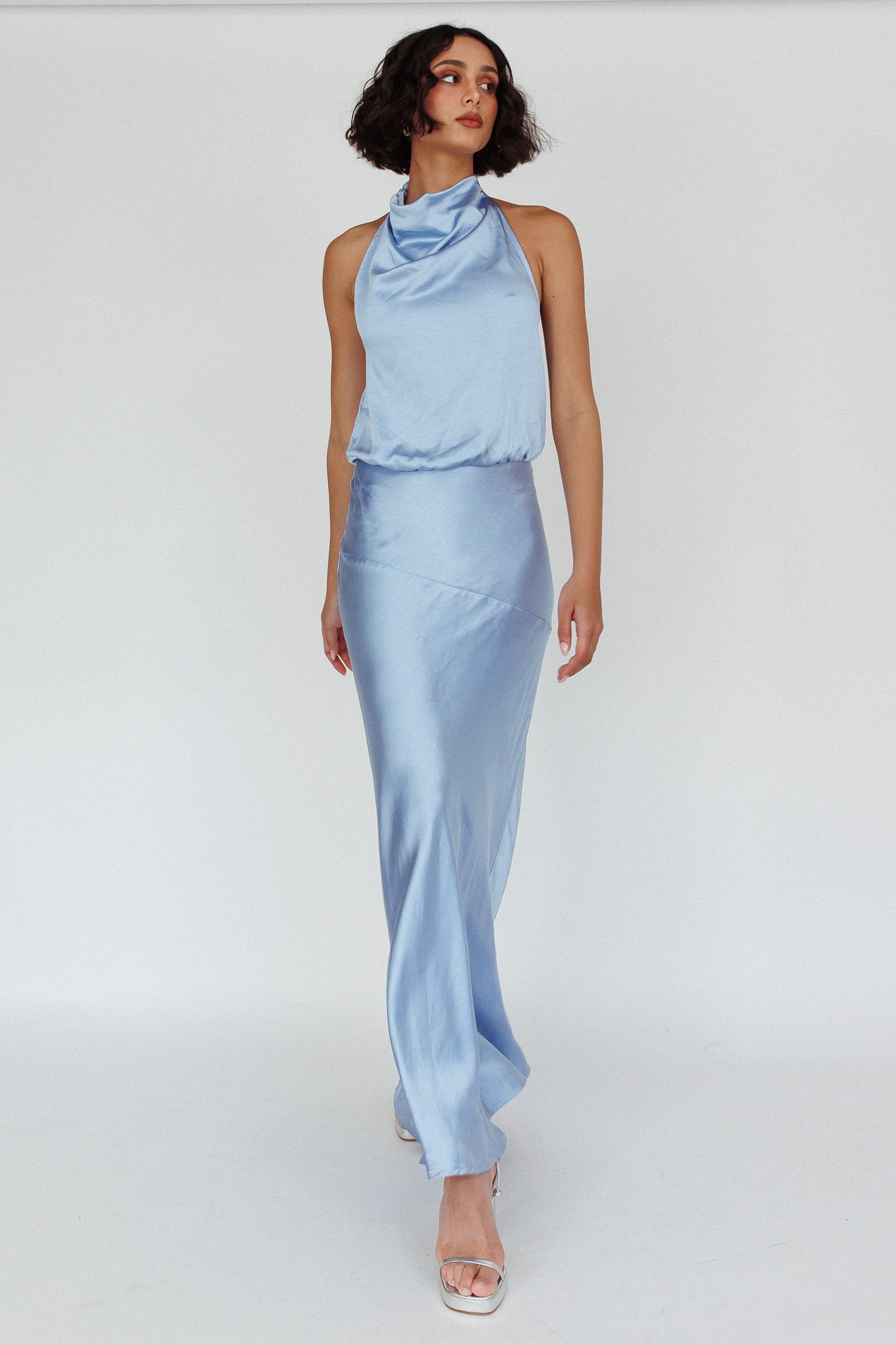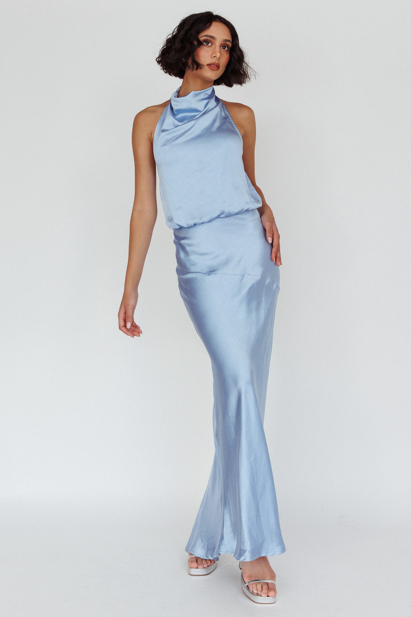 Amalfi Sunset Cowl Halterneck Maxi Dress Sky