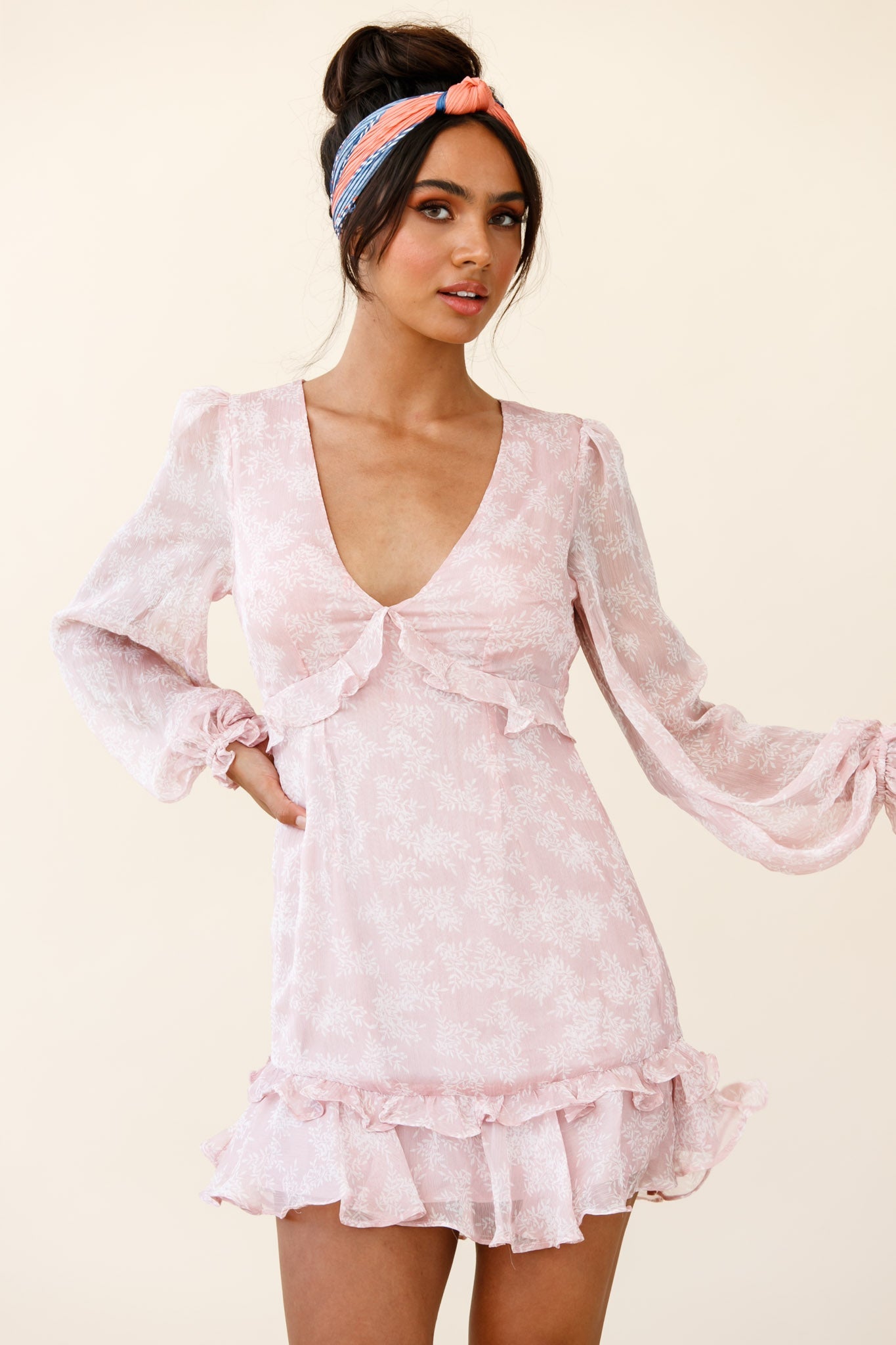 Sugar couldn't make you any sweeter in our gorgeous Amarantha dress. We are loving the sheer balloon sleeves and girly frill trim. Perfect for high tea and champagne with your favorite ladies, teamed with pearl accent jewelry and nude, tie-up heels.
