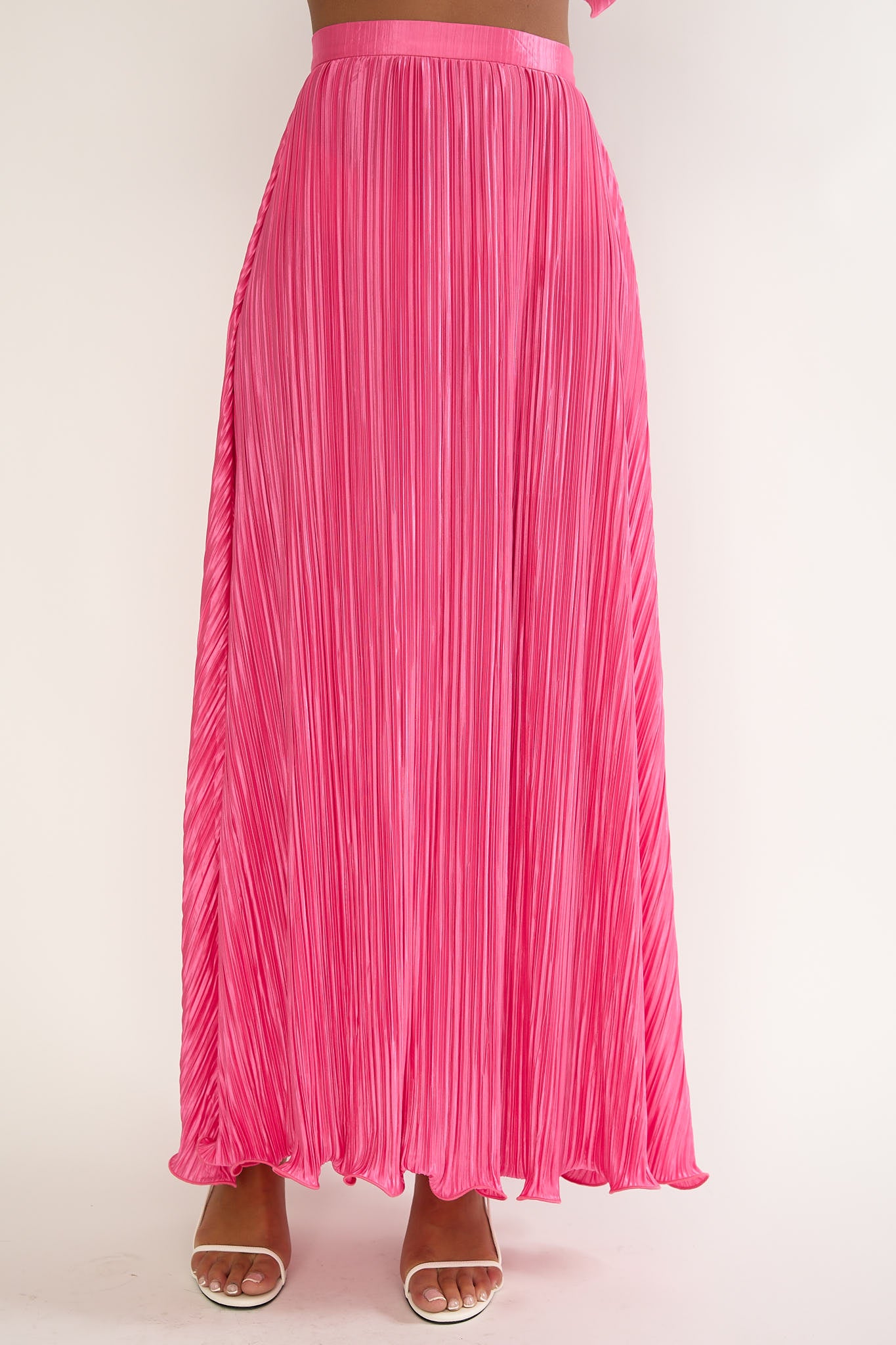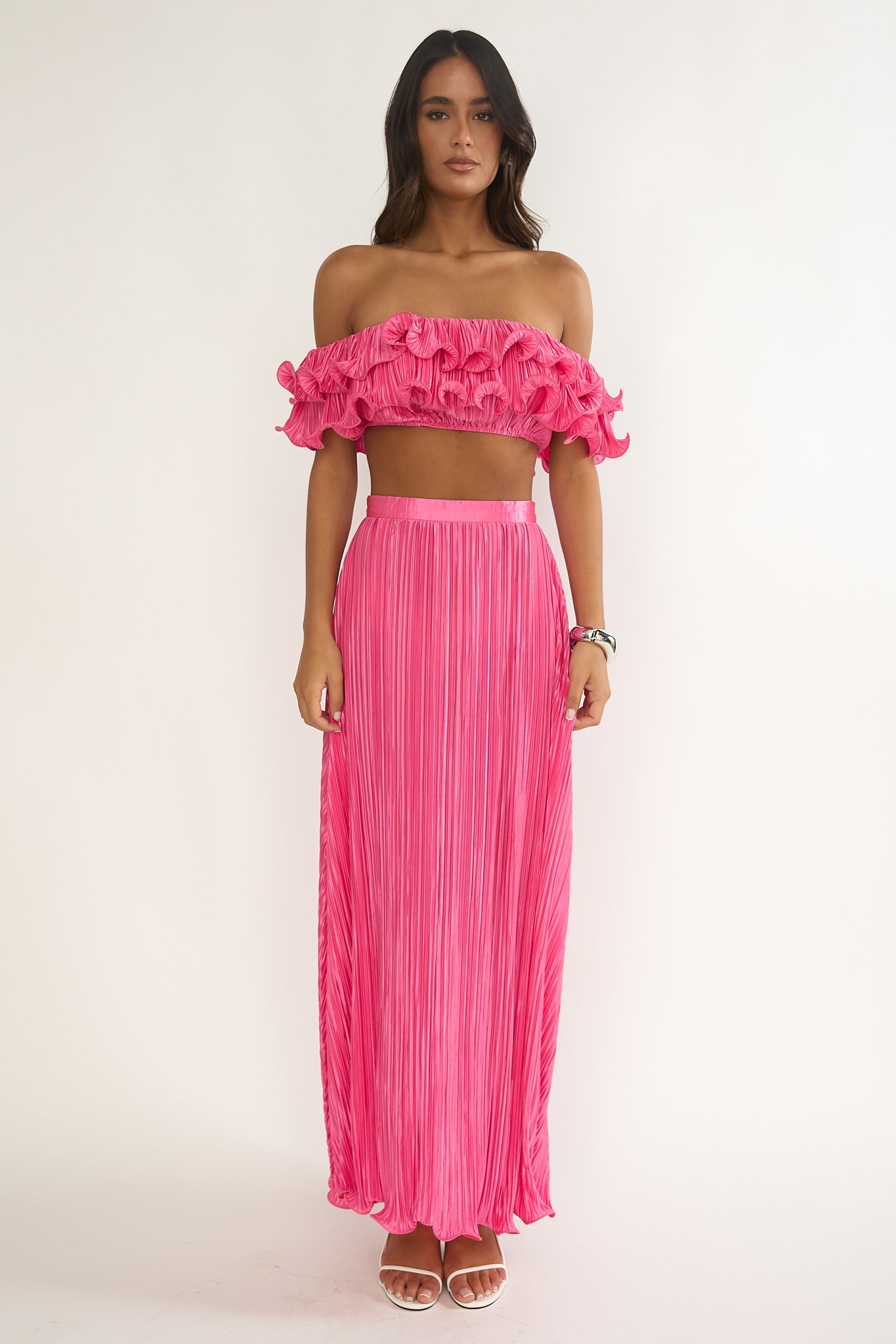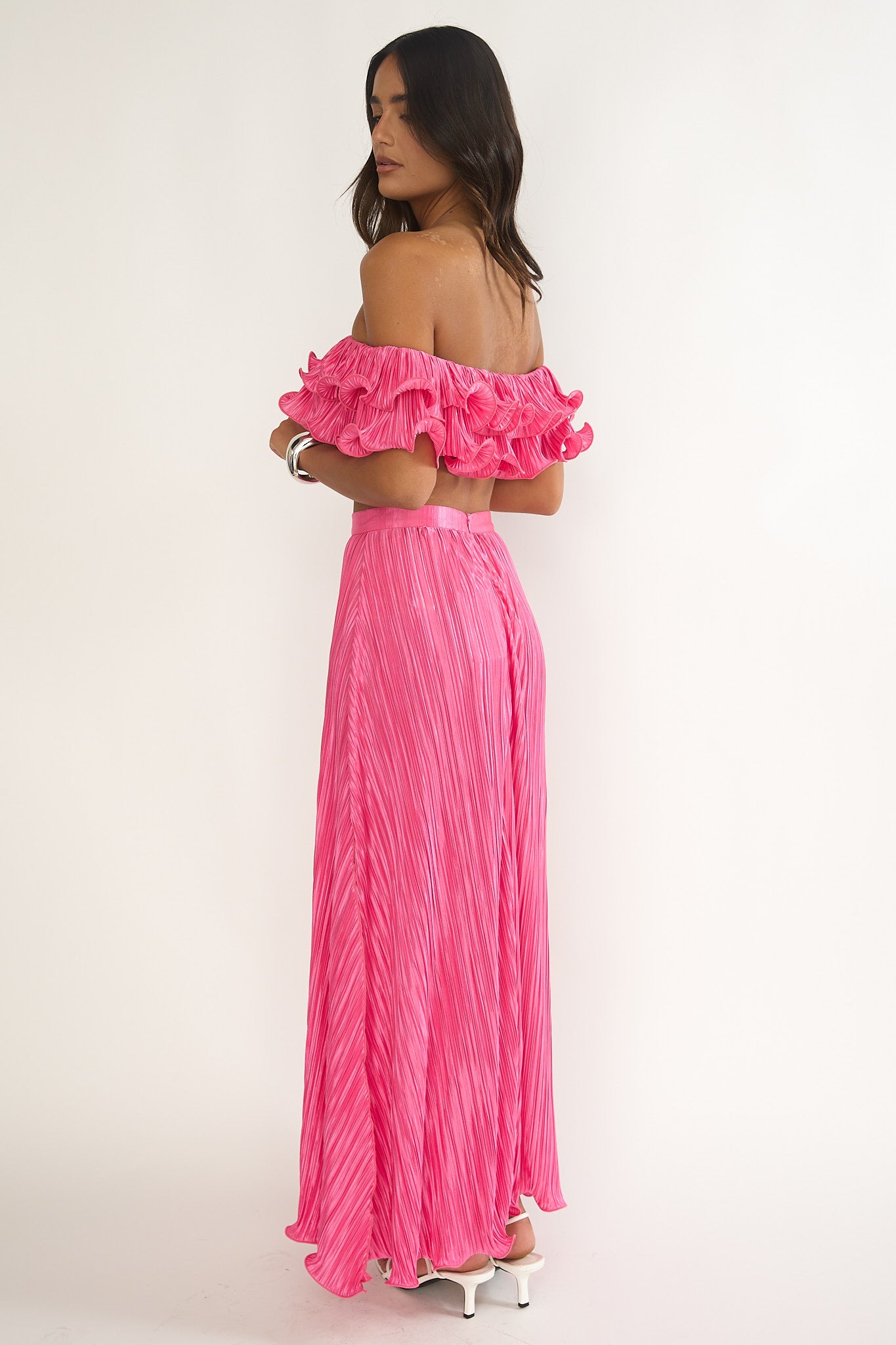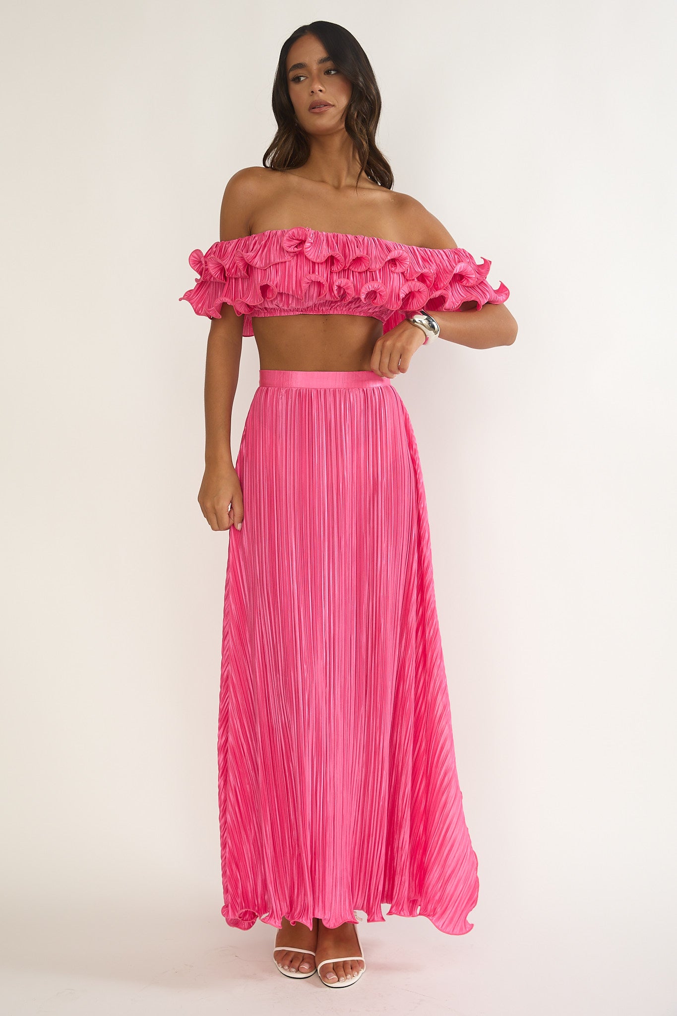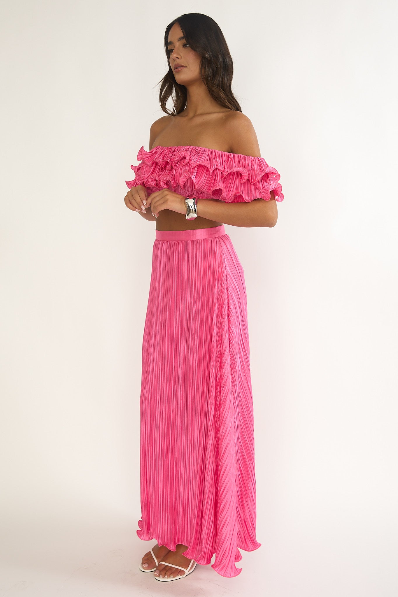 Amaria Lettuce Edge Maxi Skirt Hot Pink