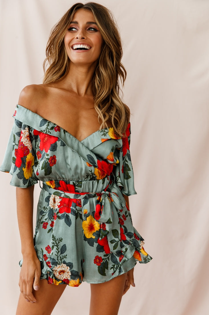 Ambrosia Off-Shoulder Floral Romper Sage