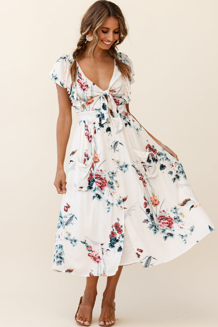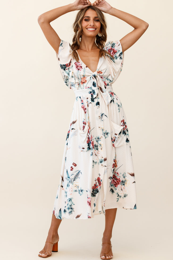 Our Amelie dress will have you wanting to book the next flight to France to stroll the cobblestone streets and sip wine in the sunshine. We are obsessed with its tied bust and button-down front. Oh and we can't forget those two adorable front pockets! Team it with a basket-weave bag, straw hat and sandals for all the French country vibes.