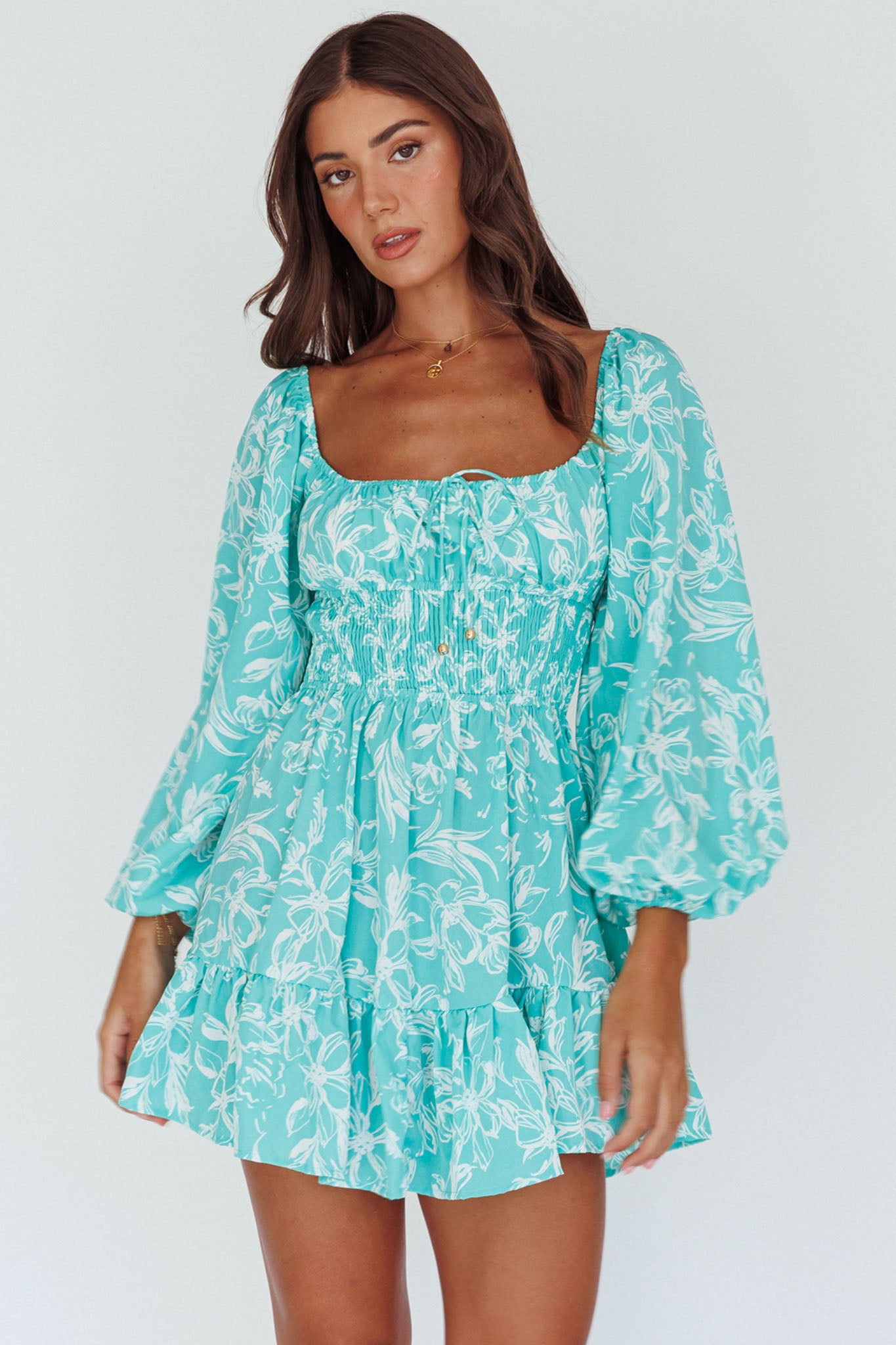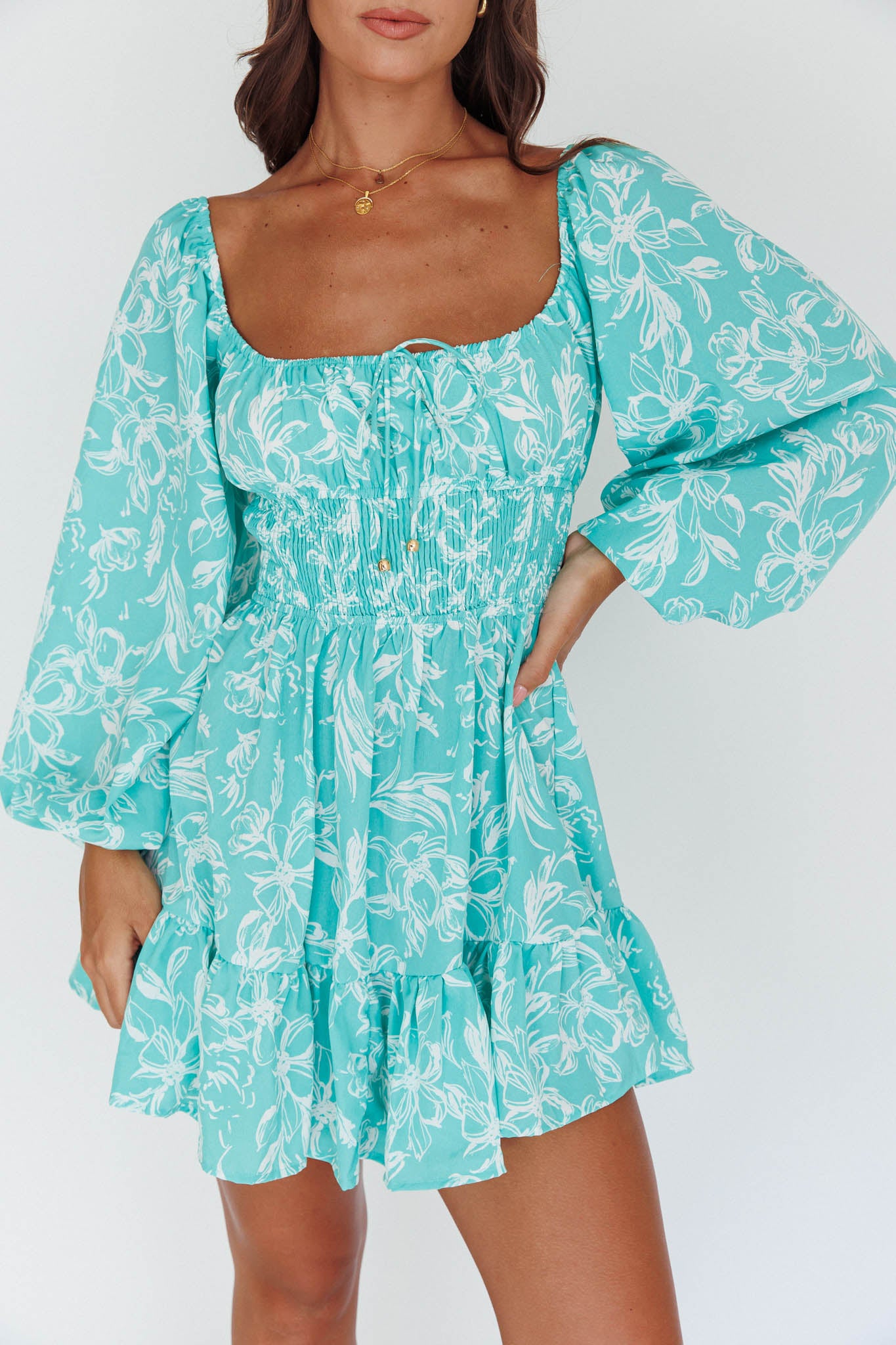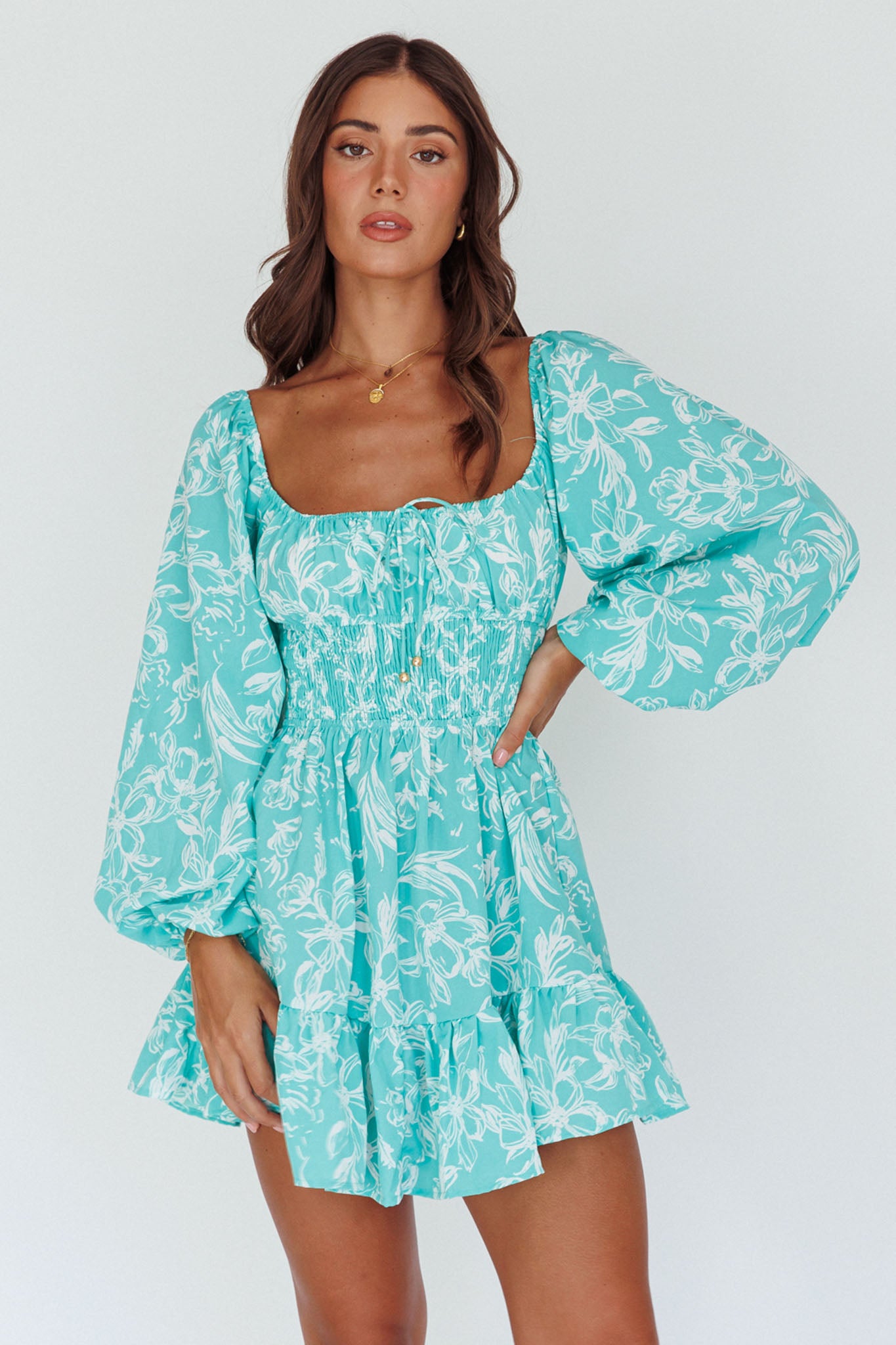 Twirl through your day in our adorable Amilie dress. Featuring long, balloon sleeves and a shirred waist. Perfect for a girls' weekend brunch get-together teamed with tan wedges and a basket bag.