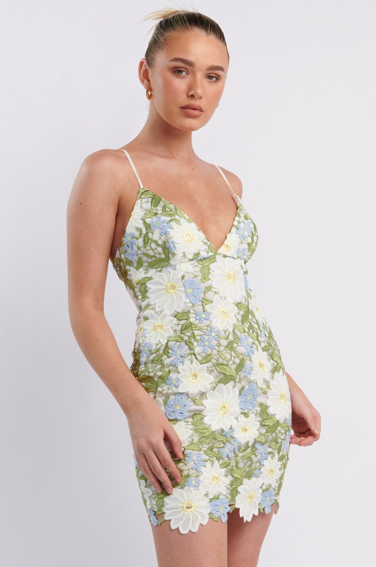 Steal the spotlight in our gorgeous Amitie mini dress. Featuring a pretty, floral lace overlay. It's perfect for a wedding or a birthday brunch with your girls. Team it with white heels and a purse for a look that will turn heads.