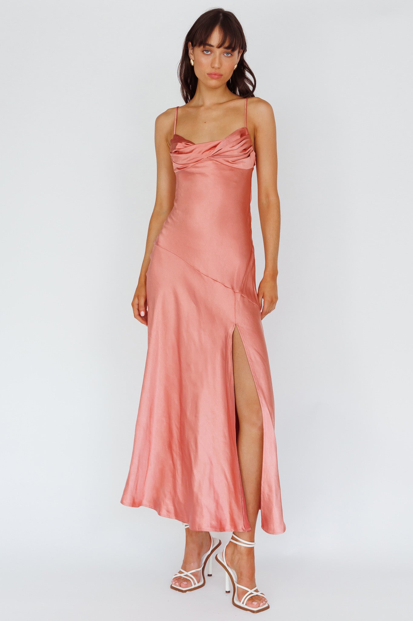 Amity Twist Bust Split Maxi Dress Rose