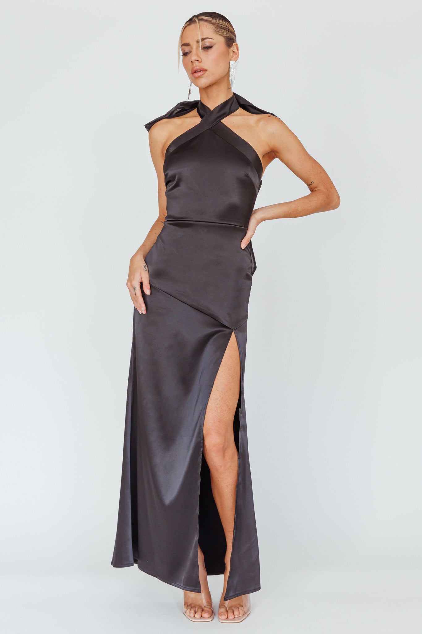 You'll feel like royalty in our stunning Andria maxi dress. Perfect for a wedding or special occasion, you'll look like you just stepped off the red carpet. We are obsessed with its large bow tie and thigh-high split. Team it with diamante heels and a satin clutch for a look that'll leave them speechless.