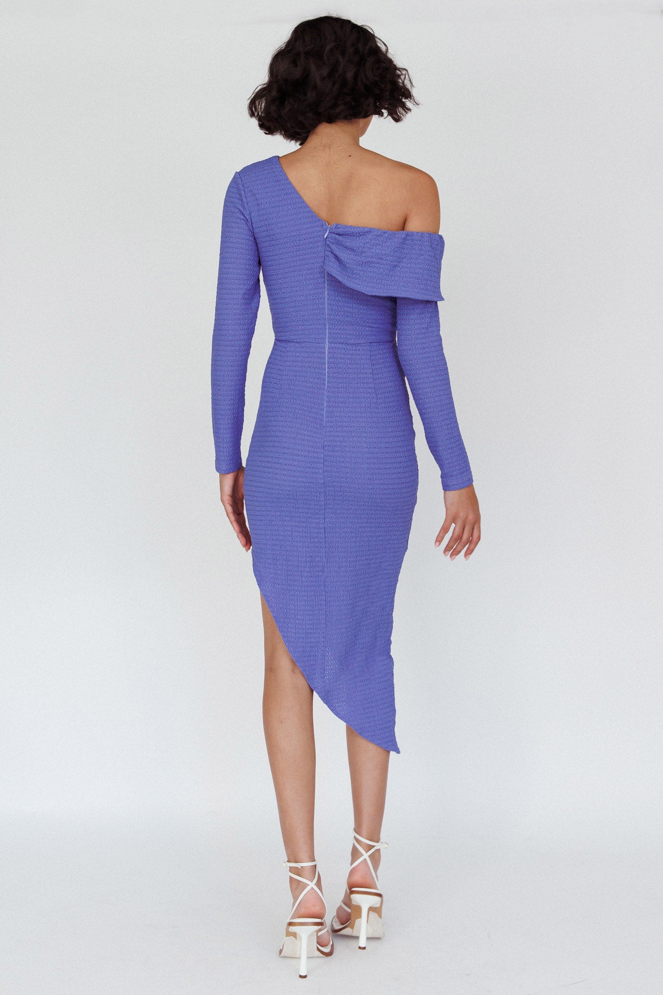 Annalora One-Shoulder Long Sleeve Midi Dress Blue