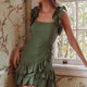 Annie Ruffle Shoulder Strap Layered Hem Mini Dress Orange