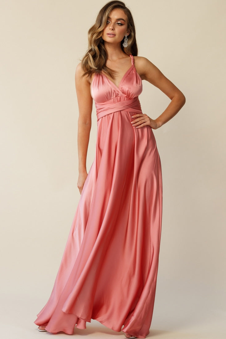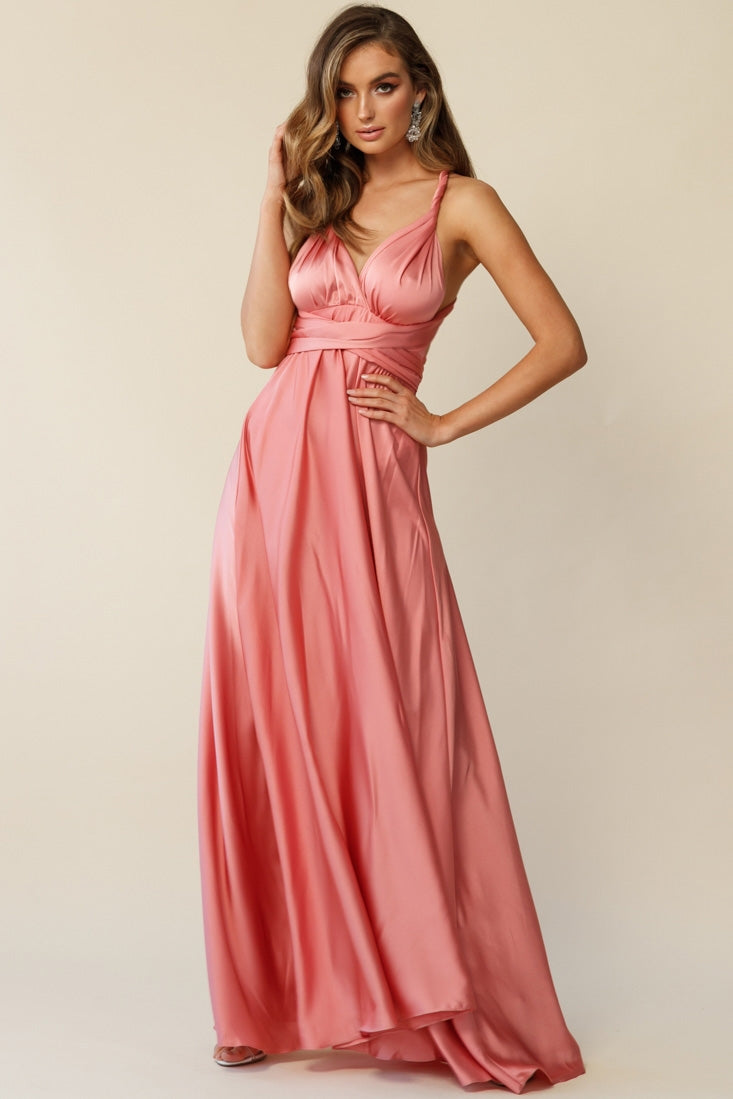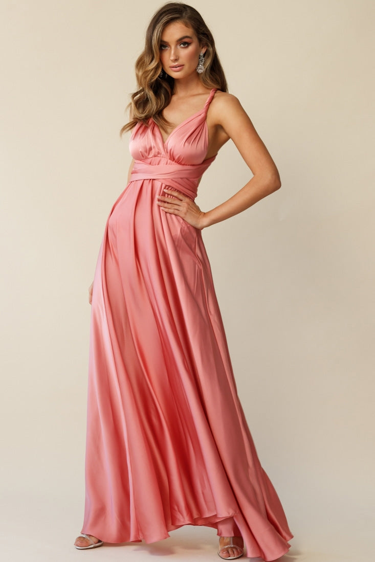 Ladies, pay attention because the Ariana Multiway dress is about to become your new best friend. But it's not just one dress, or two or three! The possibilities are endless with this pretty satin, maxi length dress that also features an invisible zipper in the back. Wrap it to flatter your shape, whether you want to show off your assets, or hide them! It's up to you. And best of all, you can wear it to multiple events, wrapping it different ways each time, and no one will know (shh, it's our little secret!). Basically, your imagination is the limit. Multiple dresses for the price of one, comfortable, soft, versatile and elegant, do we need to say more? It's a no-brainer!