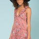 Romantic ruffles line the collar of this beautiful dress. Perfect for your next day party! Wear with brown sandals.