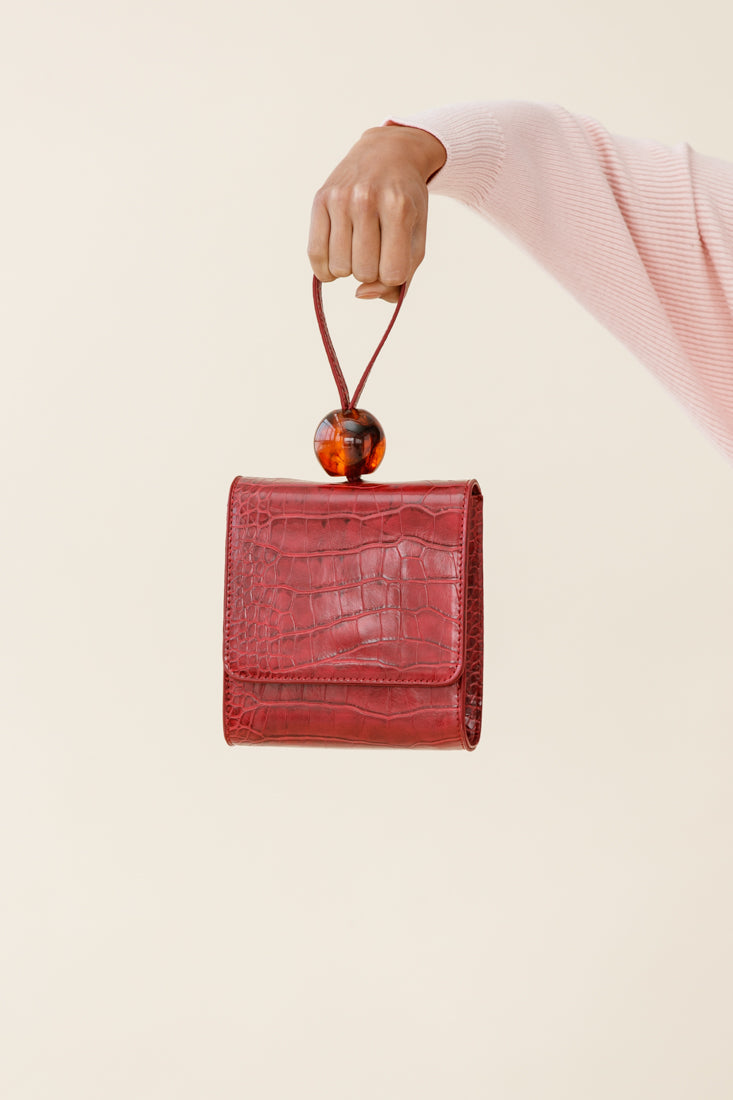 A must-have for every fashionista, our Audrey purse is chic but unique. We love its wrist-strap design and over-sized bead accent. Perfect for a girls' day out teamed with jeans and our Bright Side top for a classy look.