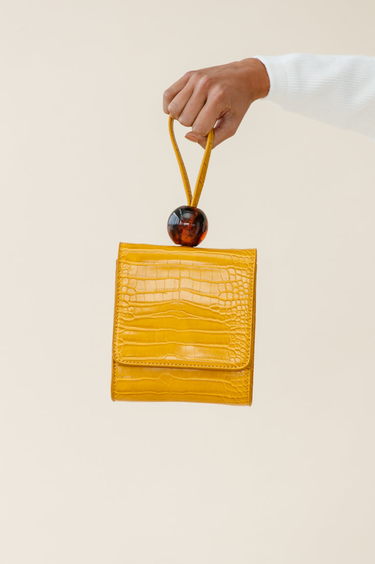 A must-have for every fashionista, our Audrey purse is chic but unique. We love its wrist-strap design and over-sized bead accent. Perfect for a girls' day out teamed with jeans and a crisp white shirt for a classy look.