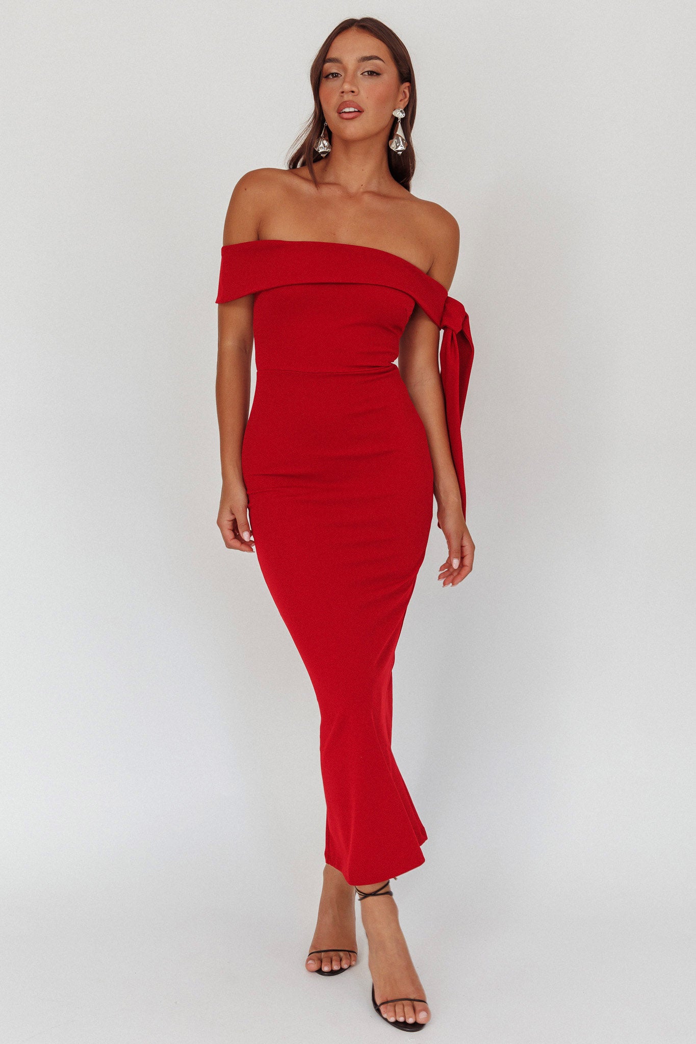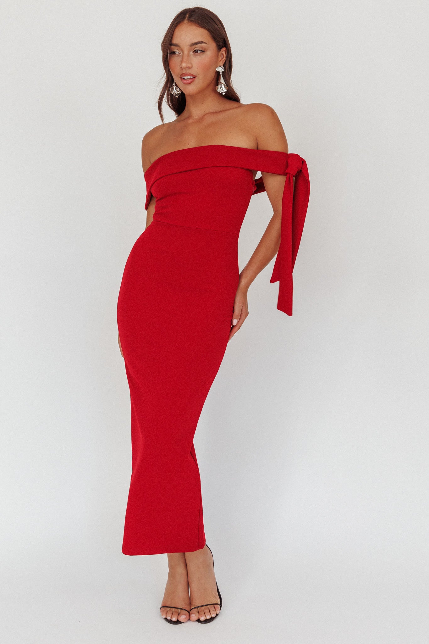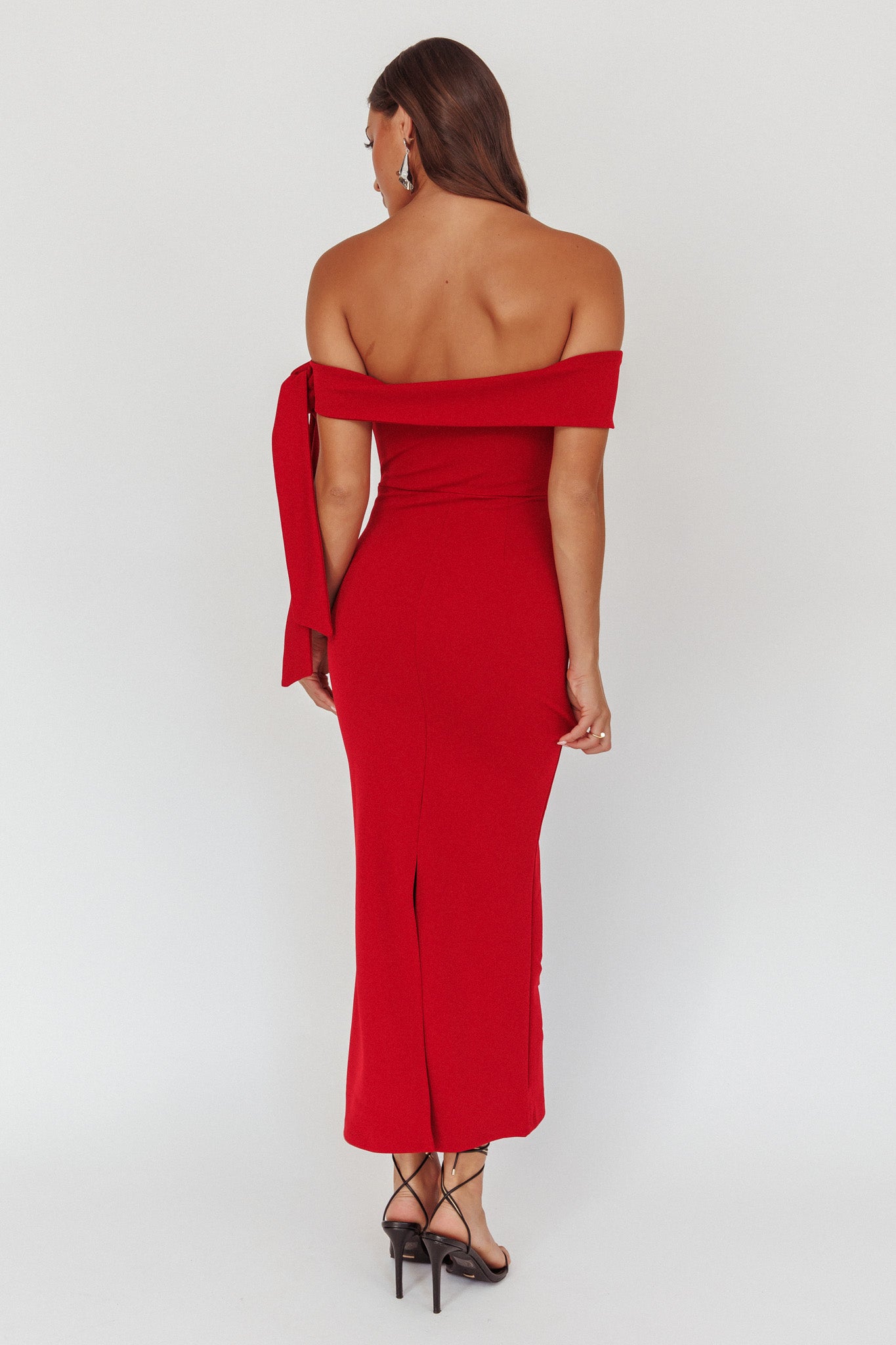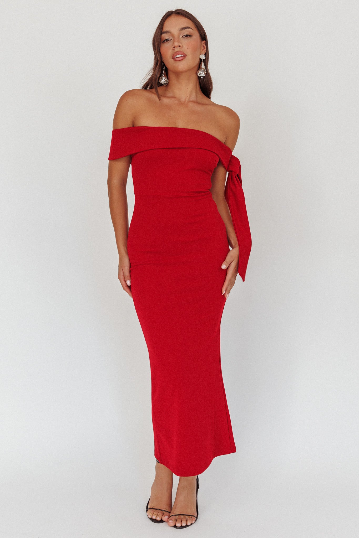 Aurora Sky Off-Shoulder Tie Maxi Dress Cherry