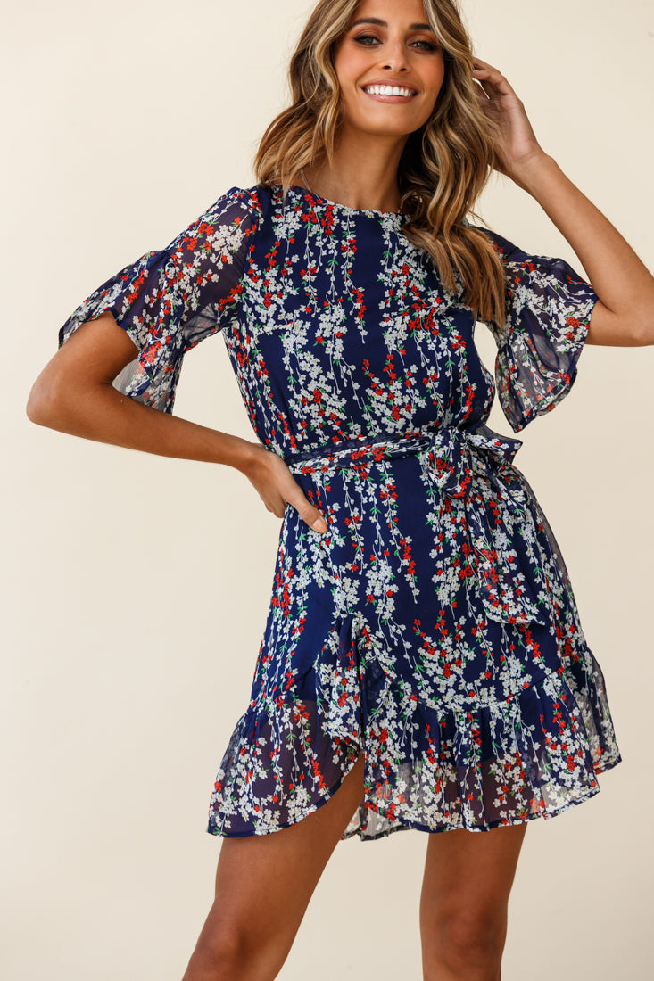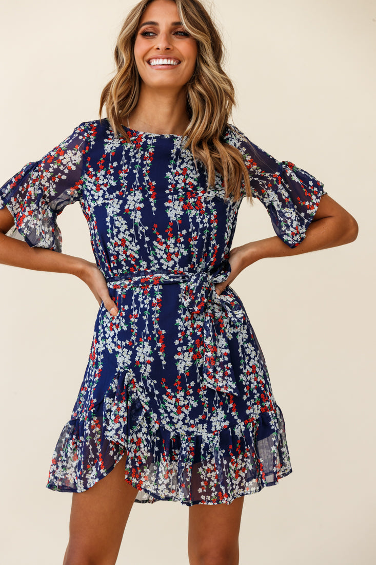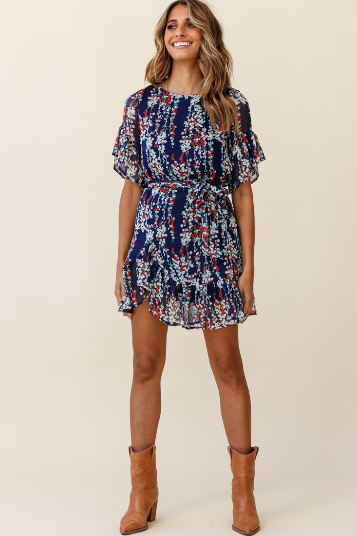 Turn heads wherever you go in our super cute Azealia dress. Featuring ruffle-fringed half-sleeves, a ruffle hemline and belted tie around the waist. Fully lined, we are loving the soft, floaty fabric. Perfect for lunch with your gal pals or a day at the mall! Team it with your favorite mules and a tote. Dreamy!