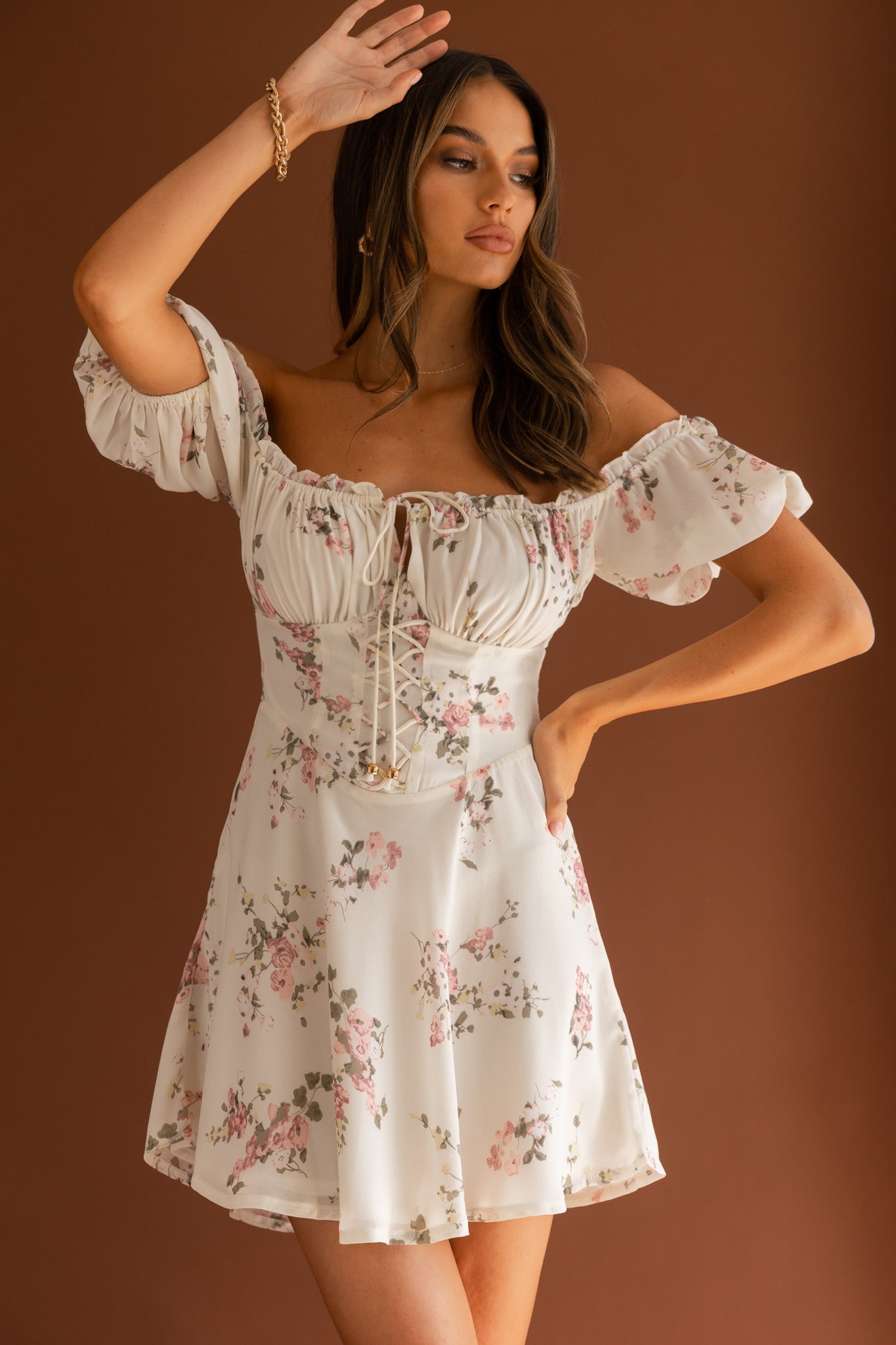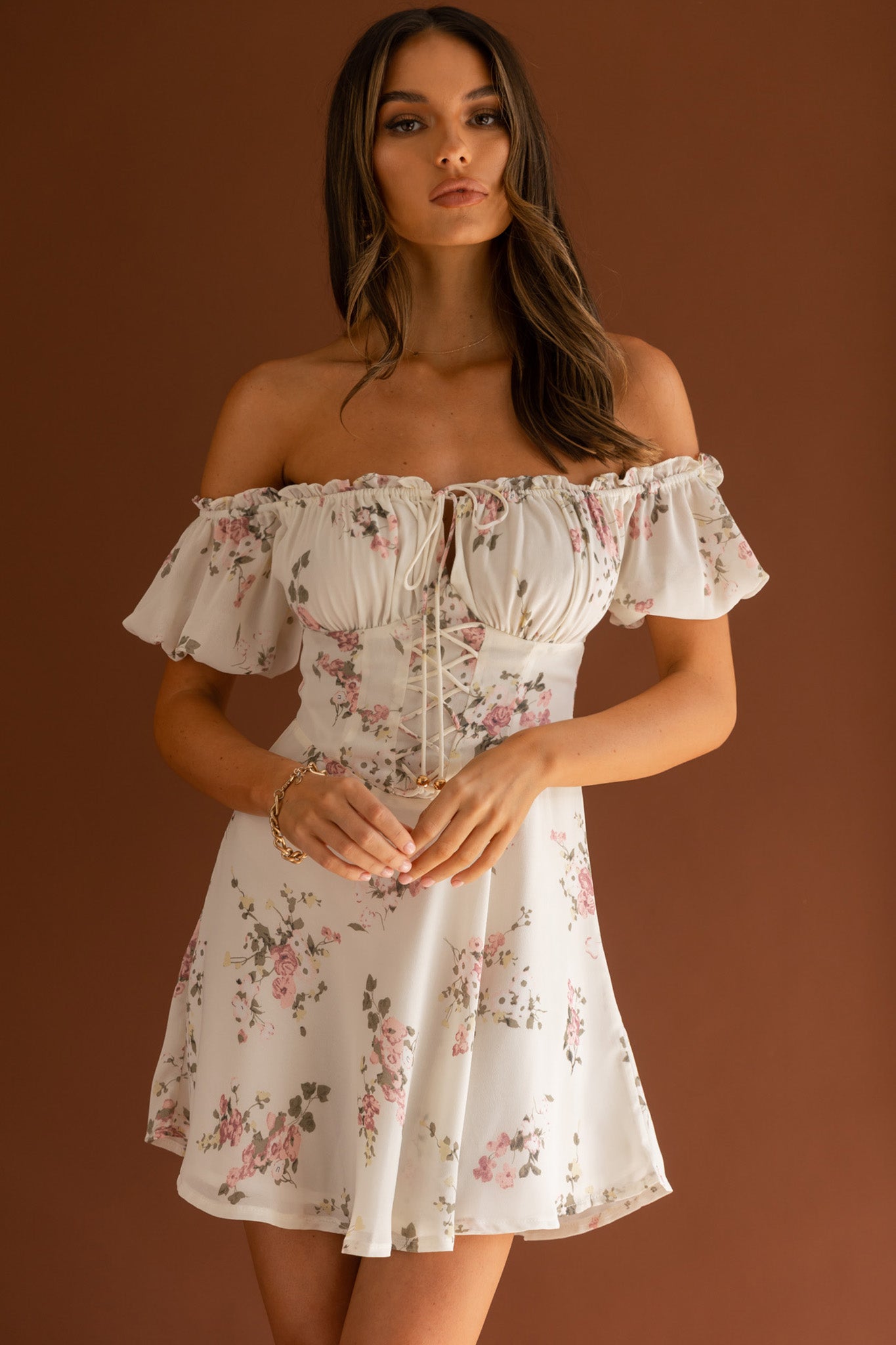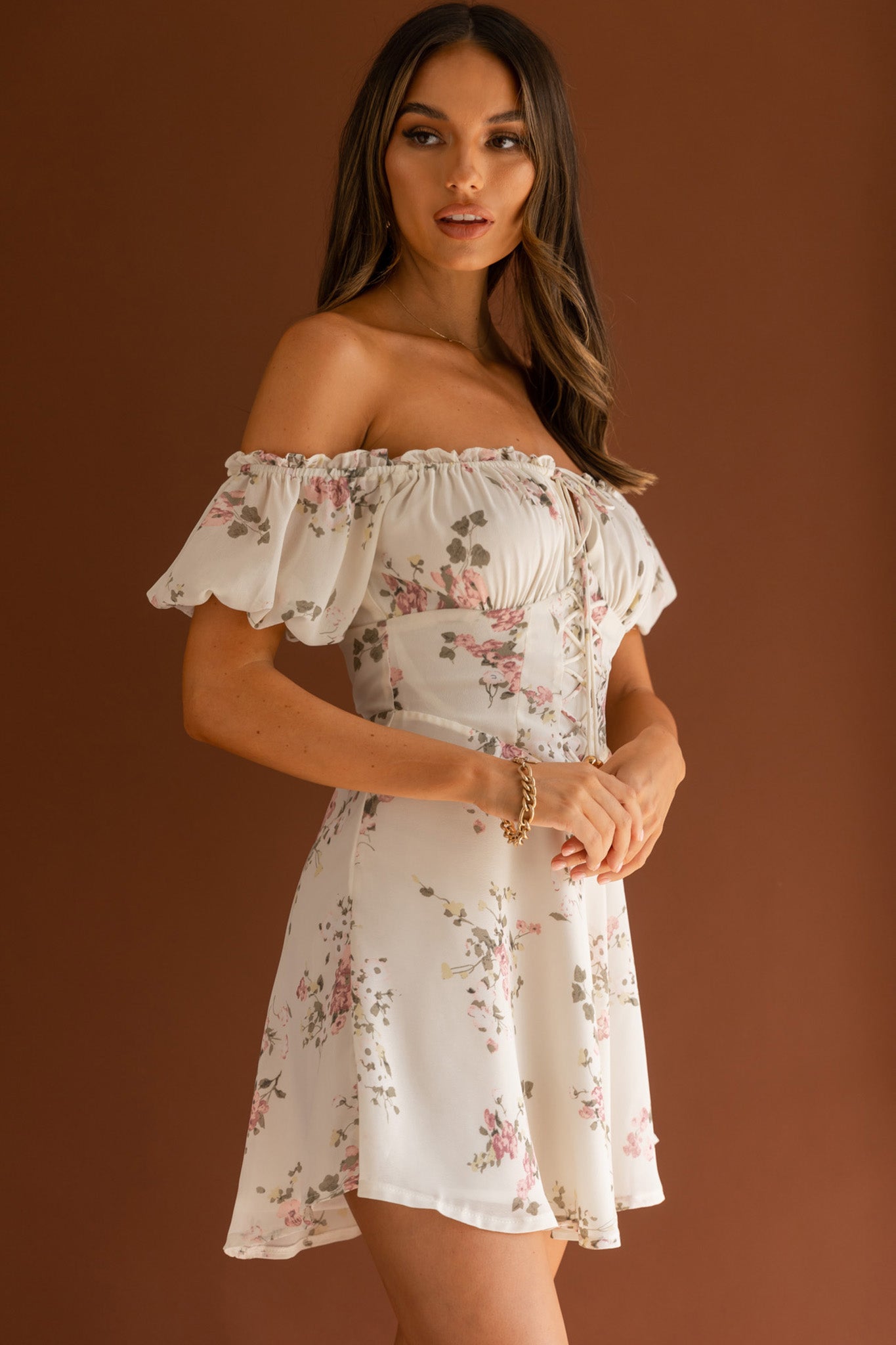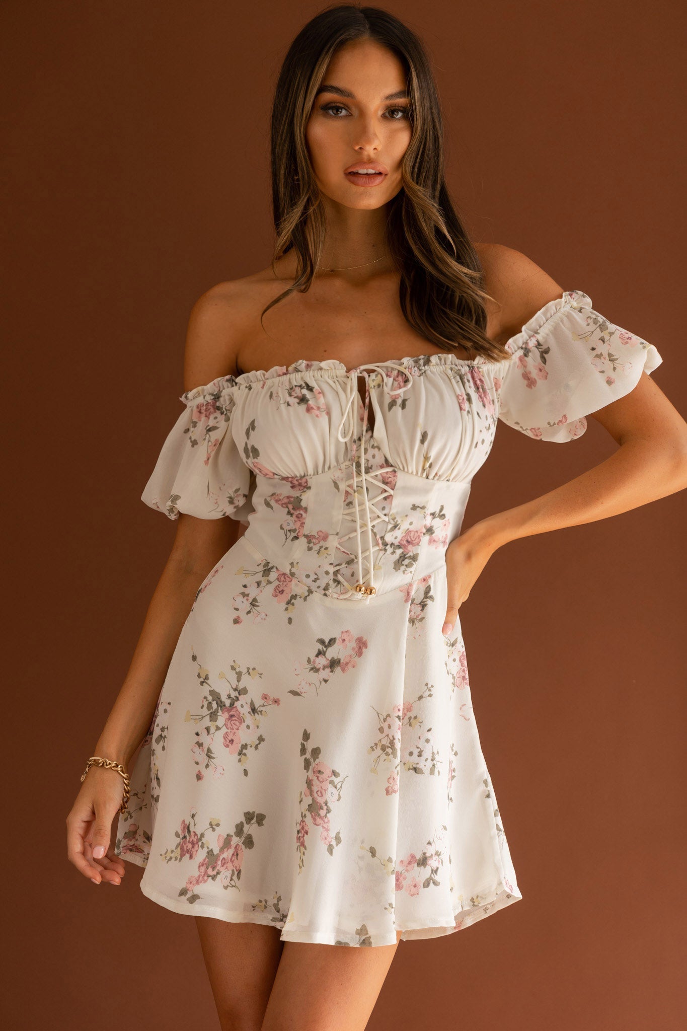 Jaws will drop when you float by in our gorgeous Belle Fleur dress. With its tied bust and pretty puff sleeves, it's fit for a princess. Perfect for a flirty first date teamed with mules and a tote for a romantic look.