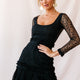 You've never looked so sweet and innocent in our adorable Birkin dress. Featuring delicate embroidered fabric, a flattering scoop neckline and the sweetest ruffle-trim hemline that's repeated around the waist and wrists for an extra touch of femininity. We are loving the peek-a-boo style back that shows just a hint of skin. Pair it with on-trend clear pvc heels for a modern twist.