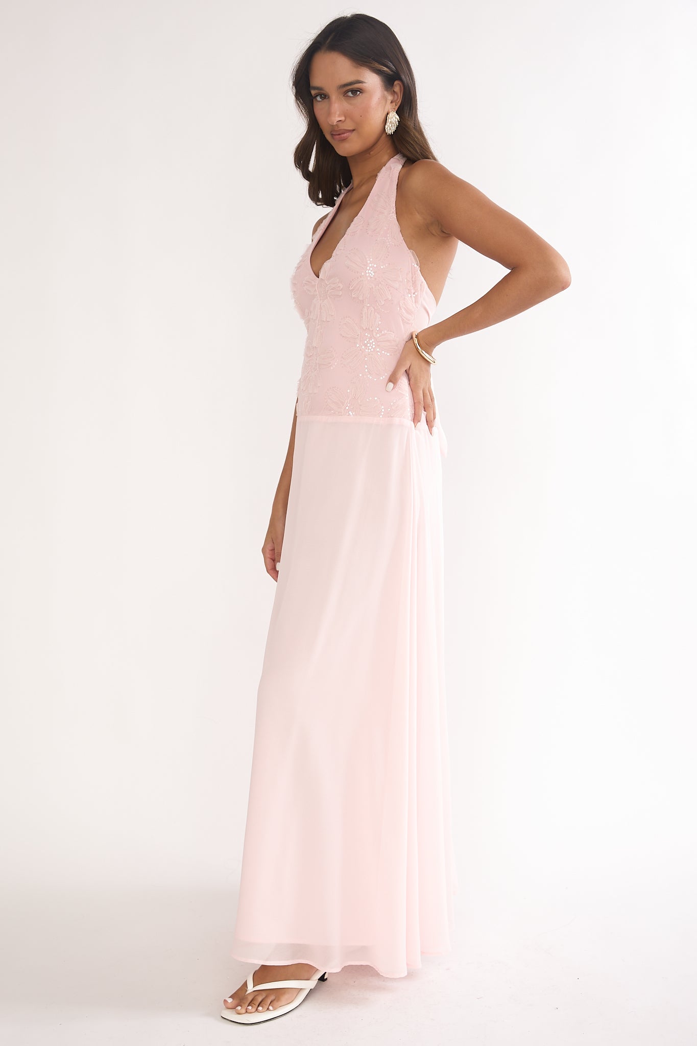 Blushing Belle Embellished Halter Maxi Dress Blush