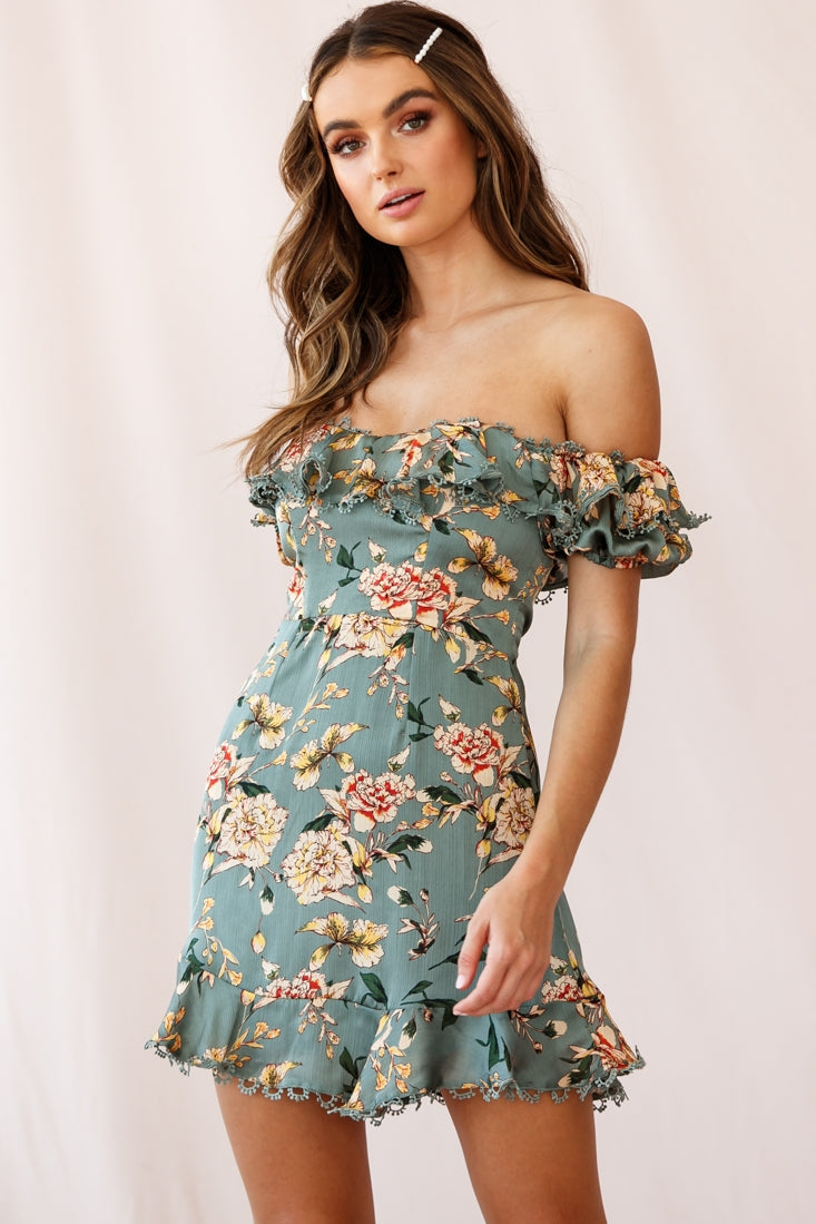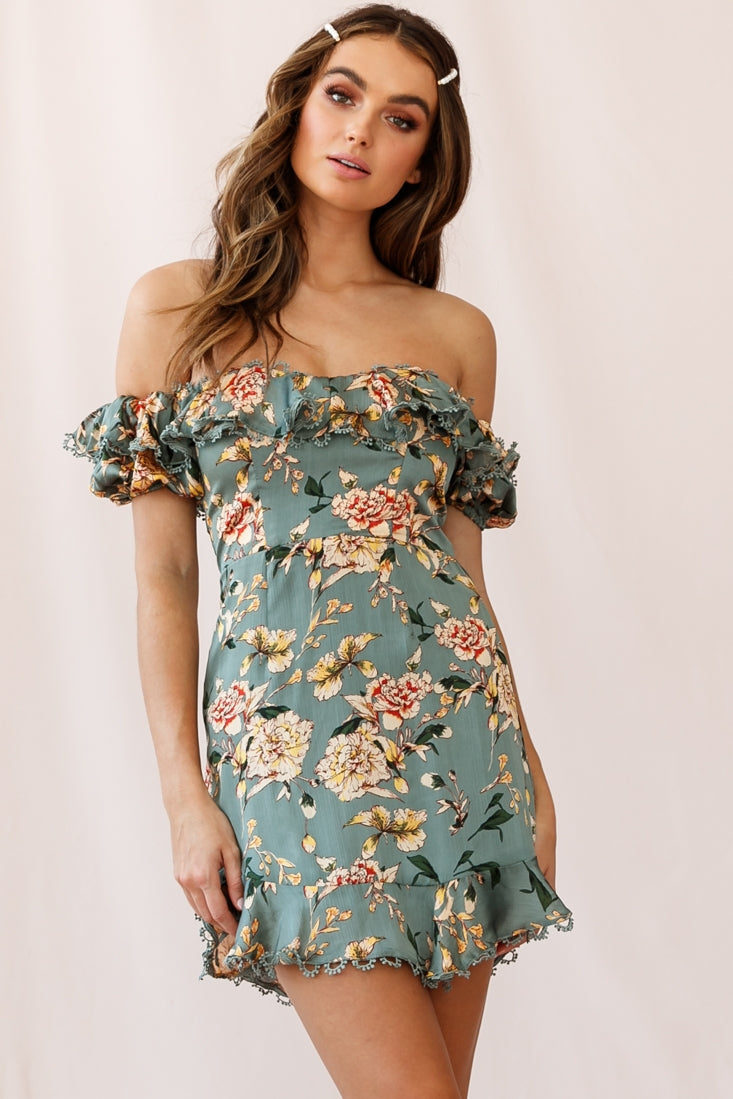 Sugar couldn't make you any sweeter in our pretty Bobby dress. Featuring an on-trend ruffle-trimmed Bardot neckline with puff sleeves and pretty embroidery trim, darling floral print and fluted hem. It's perfect for a first date or girls' day out. Pair it with beige mules and hoop earrings for a look we are loving.
