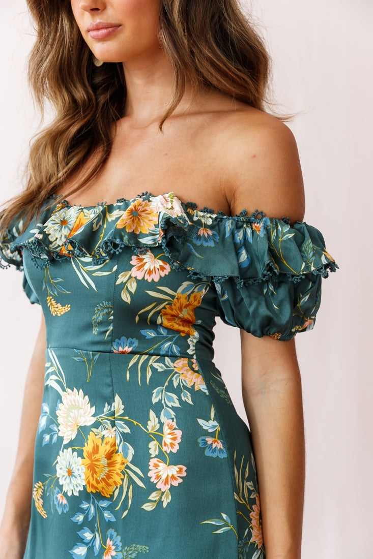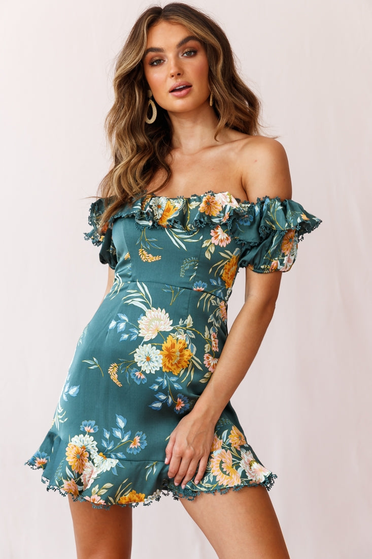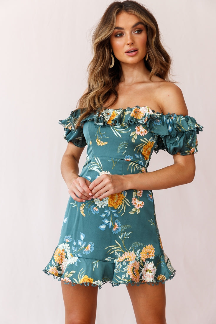 Sugar couldn't make you any sweeter in our pretty Bobby dress. Featuring an on-trend ruffle-trimmed Bardot neckline with puff sleeves and pretty embroidery trim, darling floral print and fluted hem. It's perfect for a first date or girls' day out. Pair it with beige mules and hoop earrings for a look we are loving.