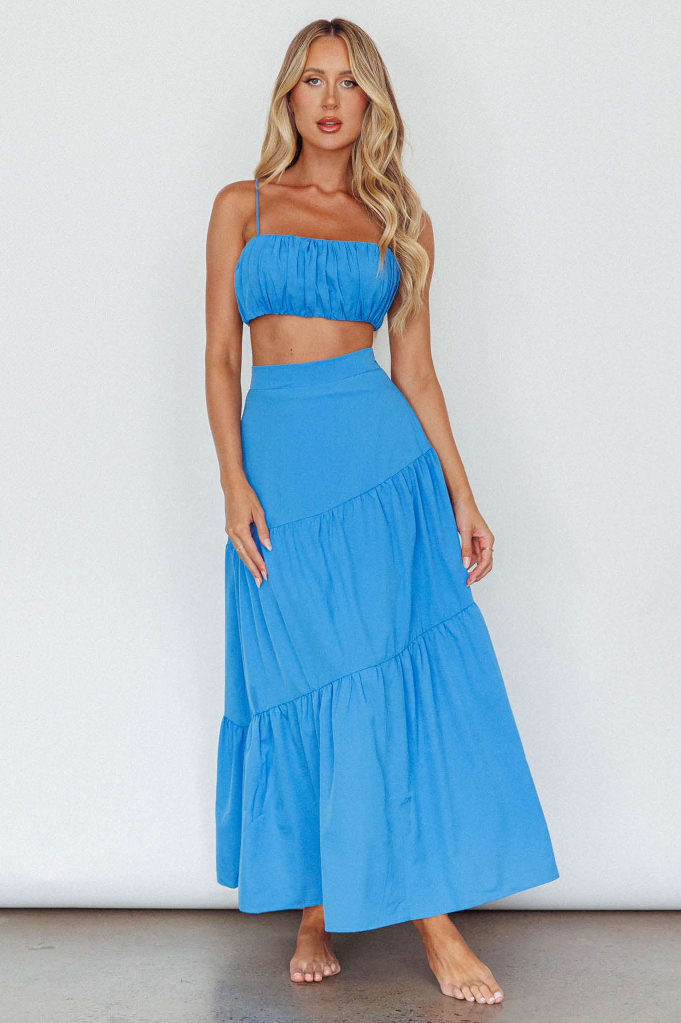 You'll feel like packing your bags and escaping for the weekend in our pretty Bondi crop top. Featuring gathering detail in the bust, it's perfect for warm weekends at your fave lunch spot or strolling the vintage markets. Team it with its matching maxi skirt to complete the look.