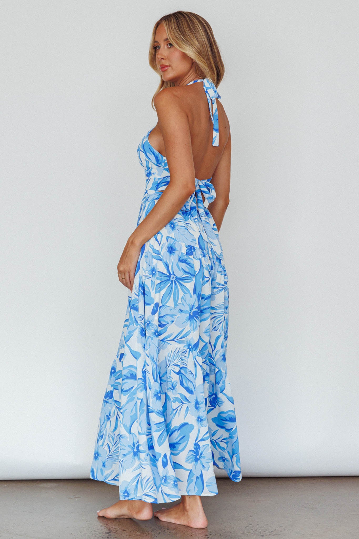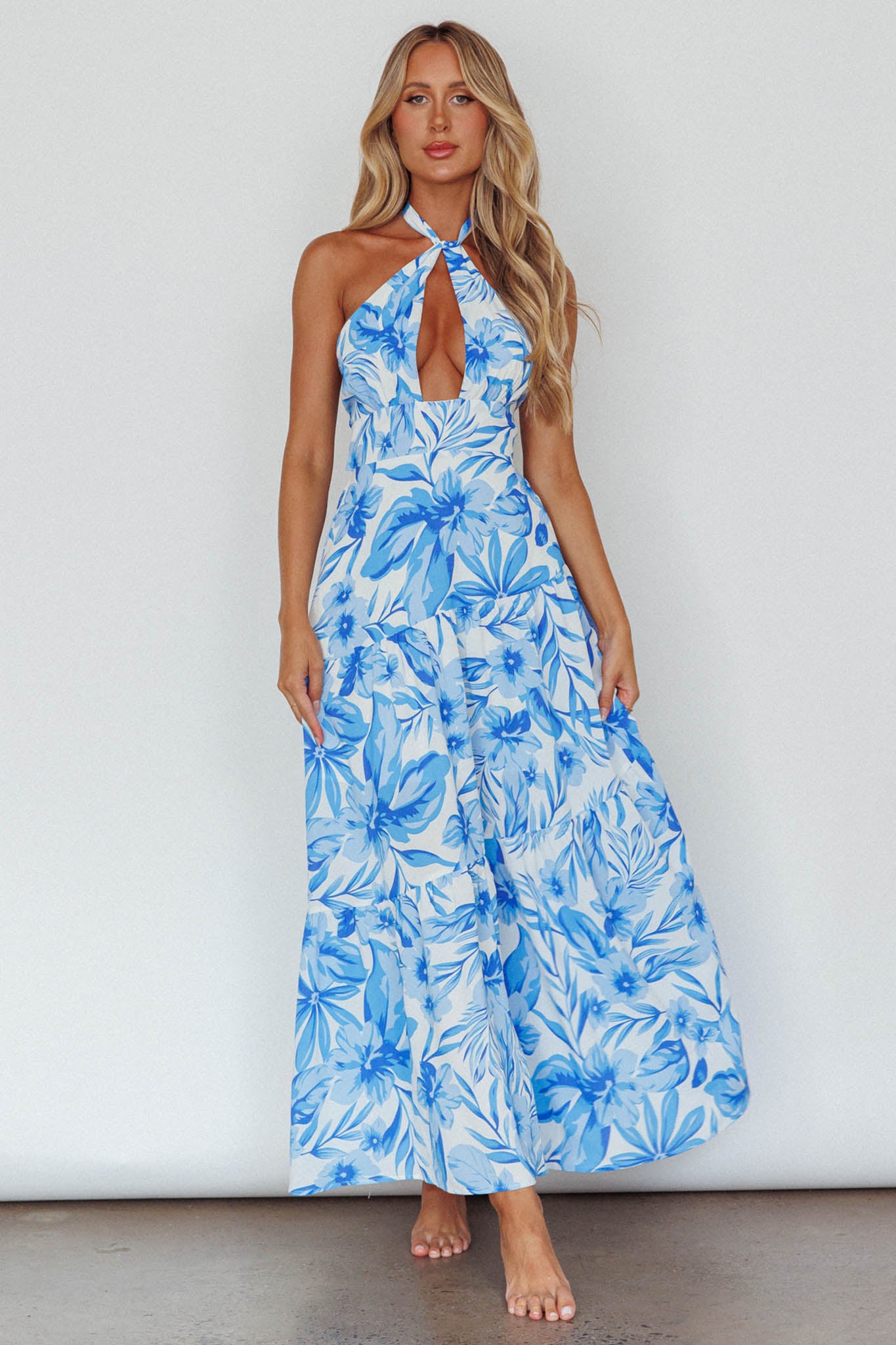 Bondi Keyhole Bust Maxi Dress Floral Blue