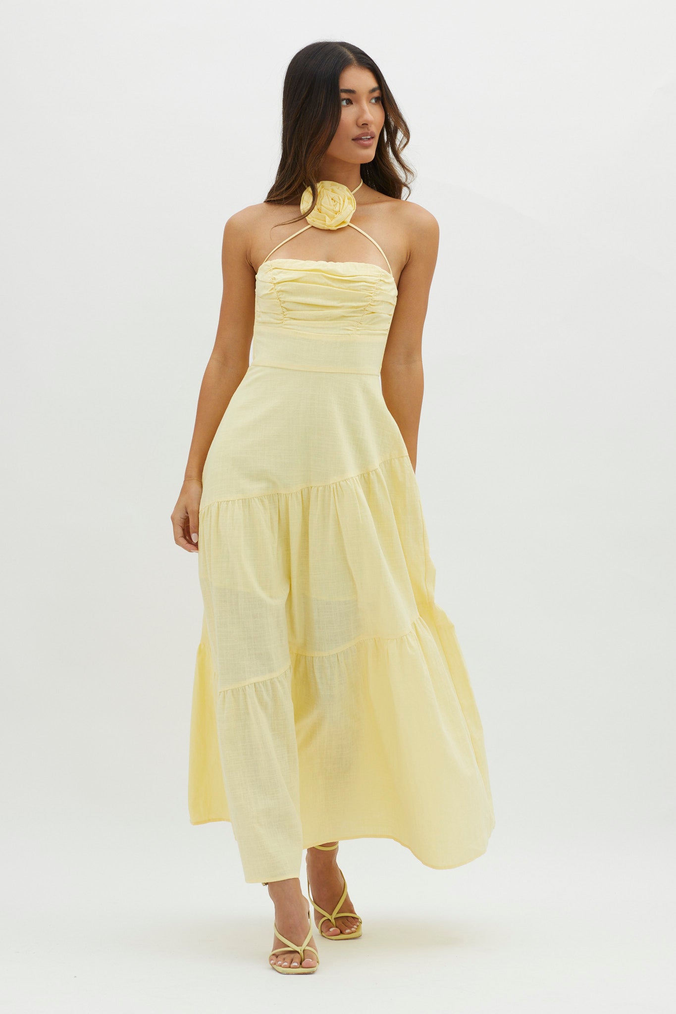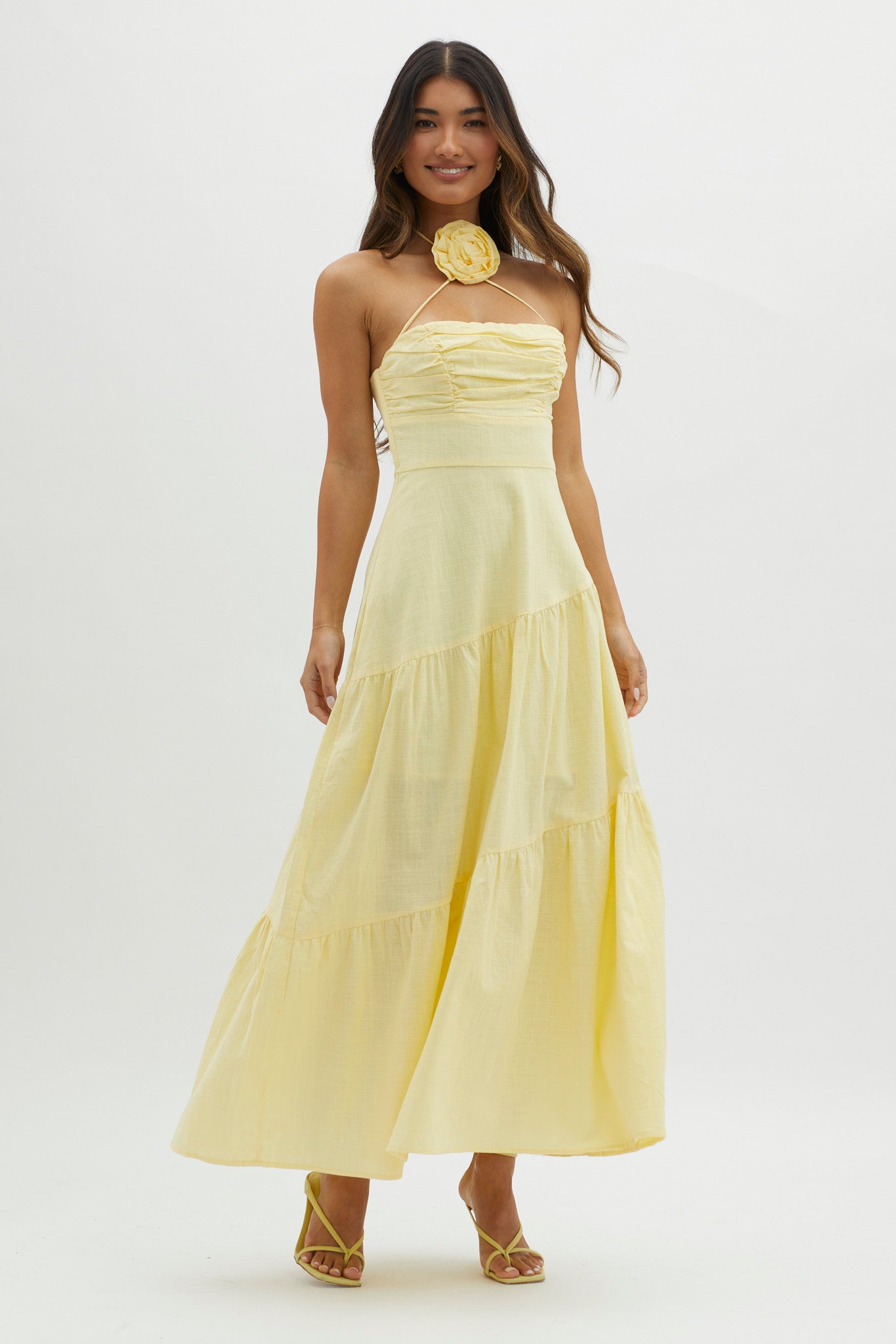 You'll feel like packing your bags and escaping for the weekend in our pretty Bondi maxi dress. Featuring a rose decoration and tie in the neck, it's perfect for warm weekends at your fave lunch spot or strolling the beachside markets. Team it with mules and a straw tote to complete the look.