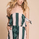 The Bonnie Striped Romper in Forest Green features a striped pattern and off the shoulder tie up sleeves for the perfect casual look. The boho print makes this romper a great choice for any of your day adventures.