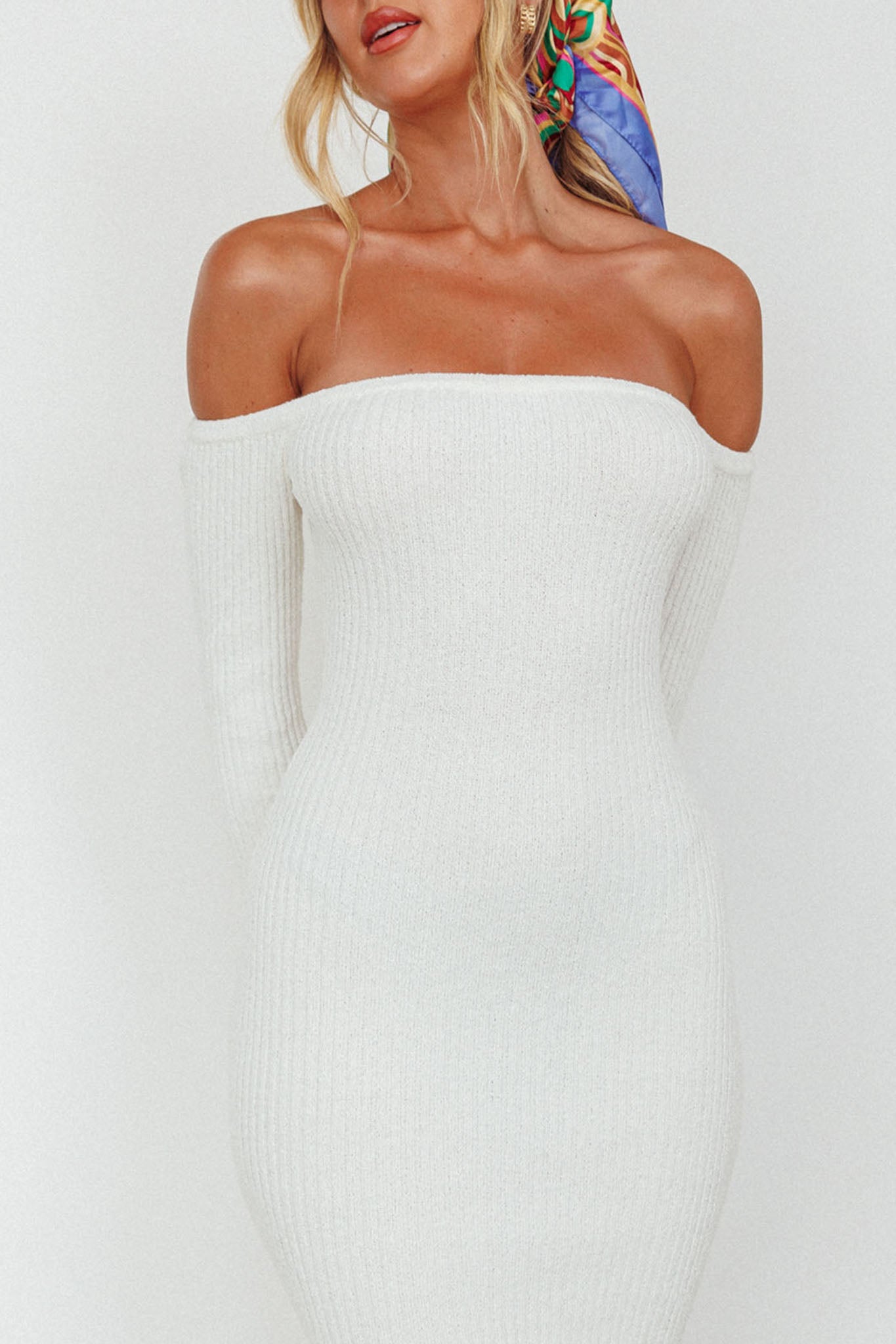 Turn heads in our super cute Briar midi dress. Featuring an off-shoulder style and soft, knit fabric. Perfect for a flirty date night teamed with mules and a tote for a look that'll sweep them off their feet.