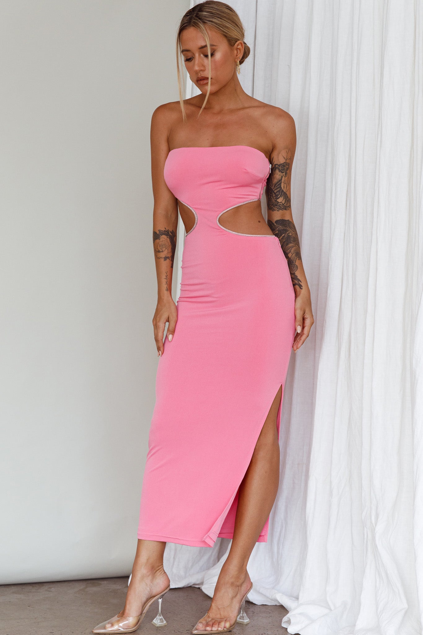 Steal the spotlight in our gorgeous Bridget midi dress. Featuring a cut-out waist with a sparkly diamante trim. It's perfect for a birthday party celebration or a special event. Team it with silver, strappy heels and a clutch for a showstopping look we've fallen in love with.