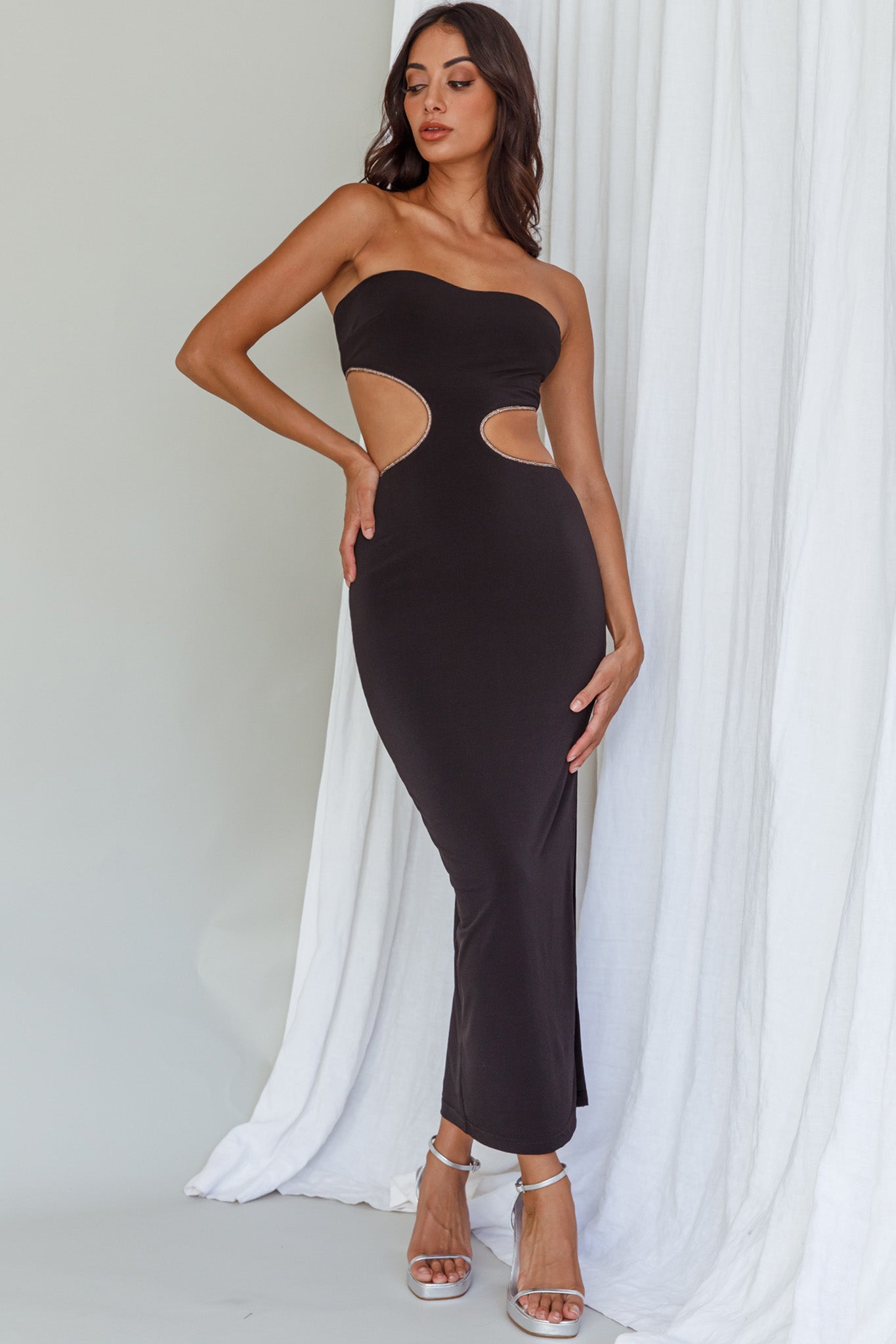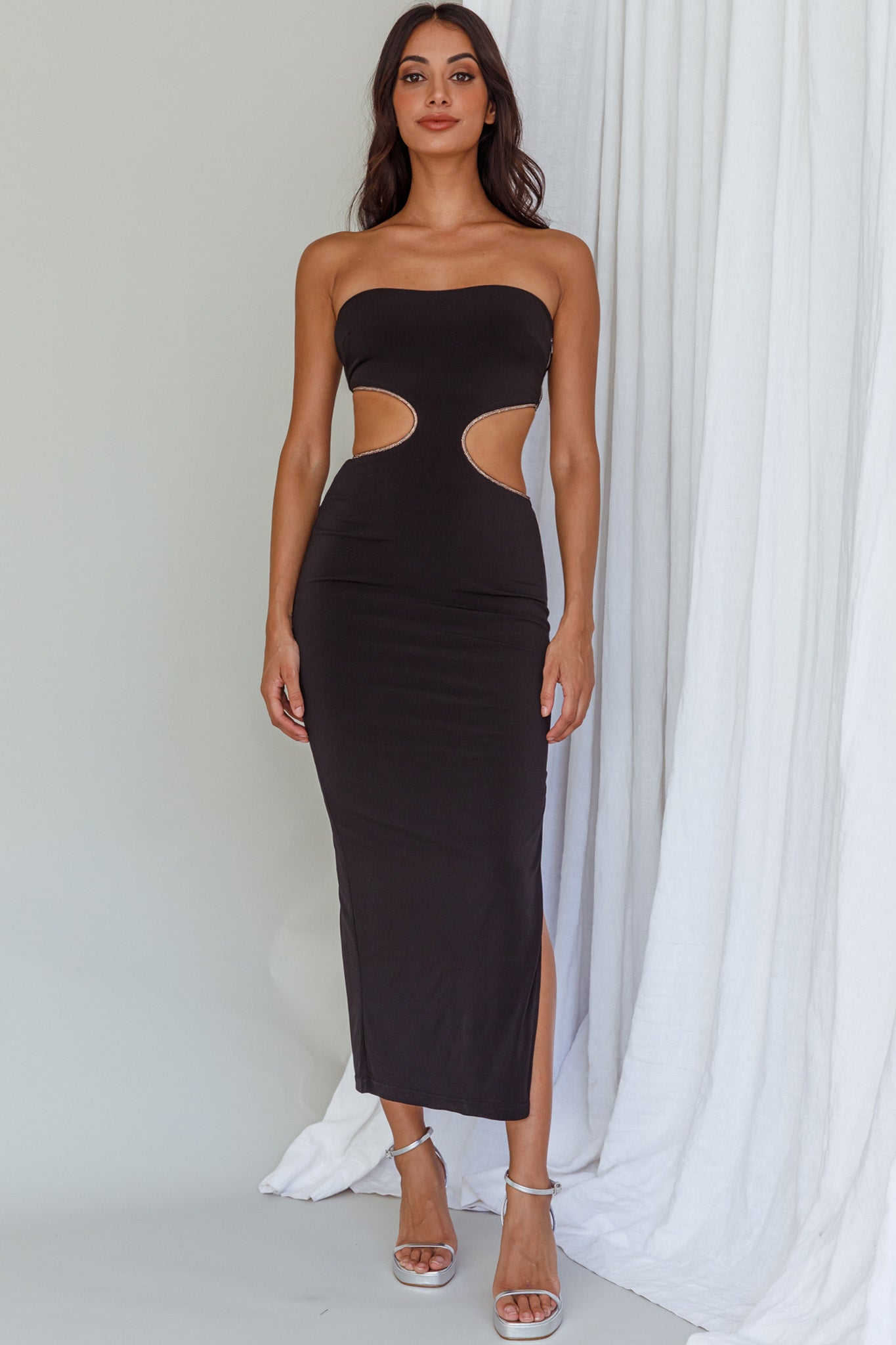 Steal the spotlight in our gorgeous Bridget midi dress. Featuring a cut-out waist with a sparkly diamante trim. It's perfect for a birthday party celebration or a special event. Team it with silver, strappy heels and a clutch for a showstopping look we've fallen in love with.