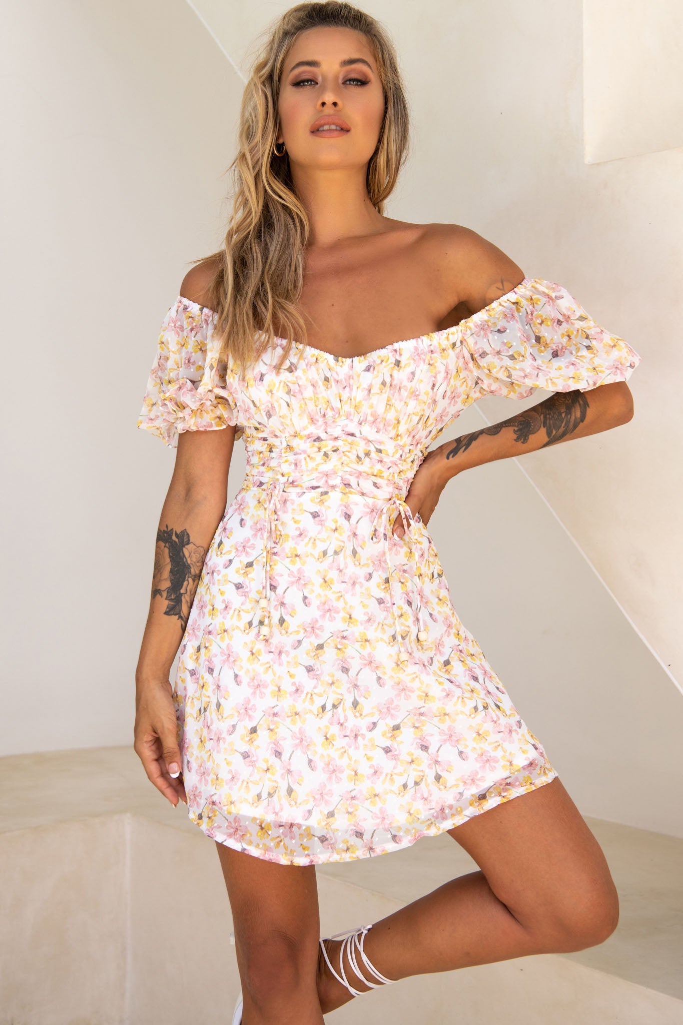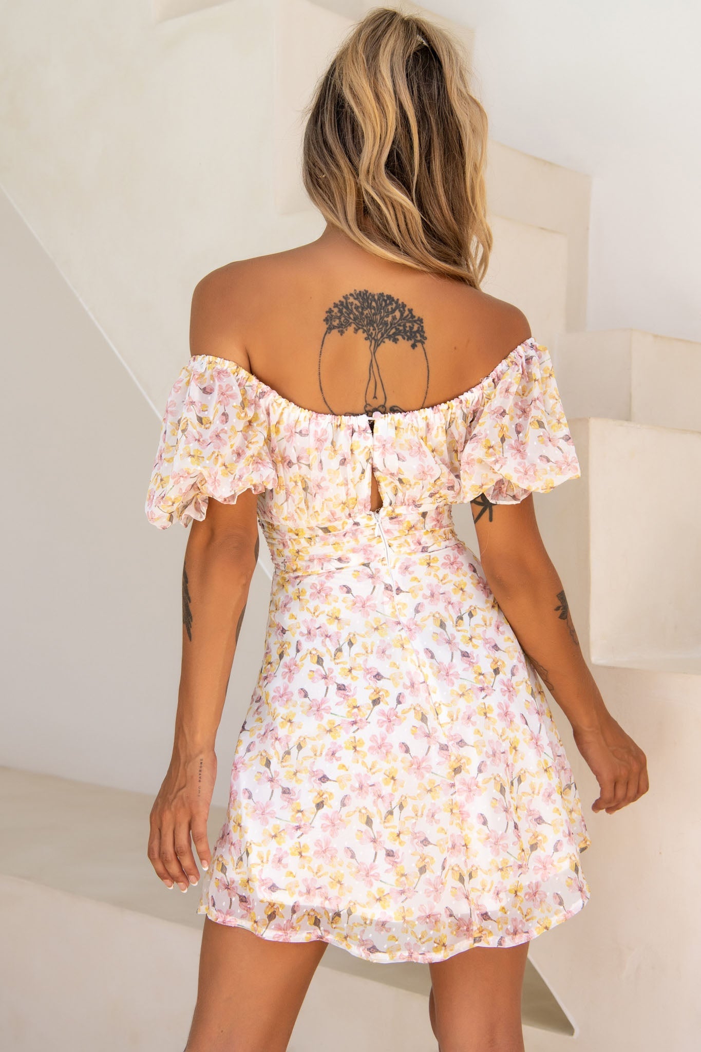 Bright Side Off-Shoulder Puff Sleeve Dress Floral Print Pink/Yellow