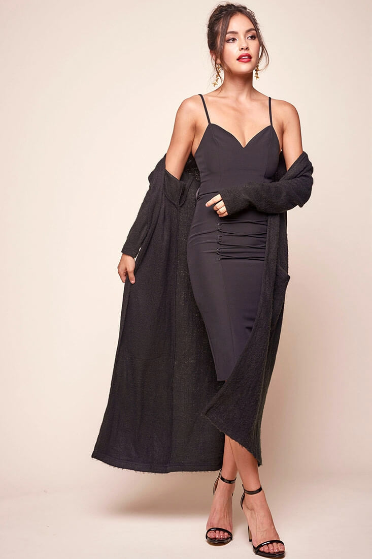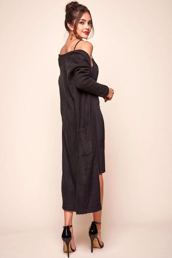 Every woman needs a staple cardigan in her wardrobe! Add this long sleeved, knee-length cardi to your roster and it'll quickly become your favorite.