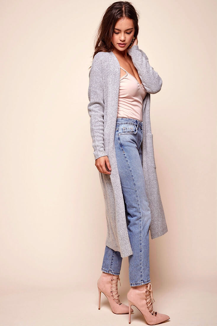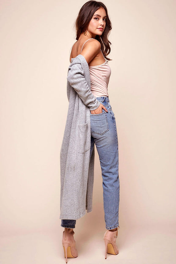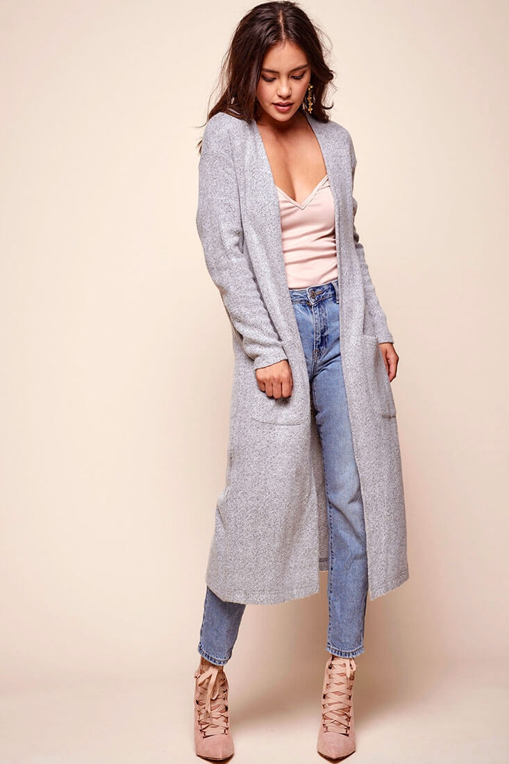 Every woman needs a staple cardigan in her wardrobe! Add this long sleeved, knee-length cardi to your roster and it'll quickly become your favorite.