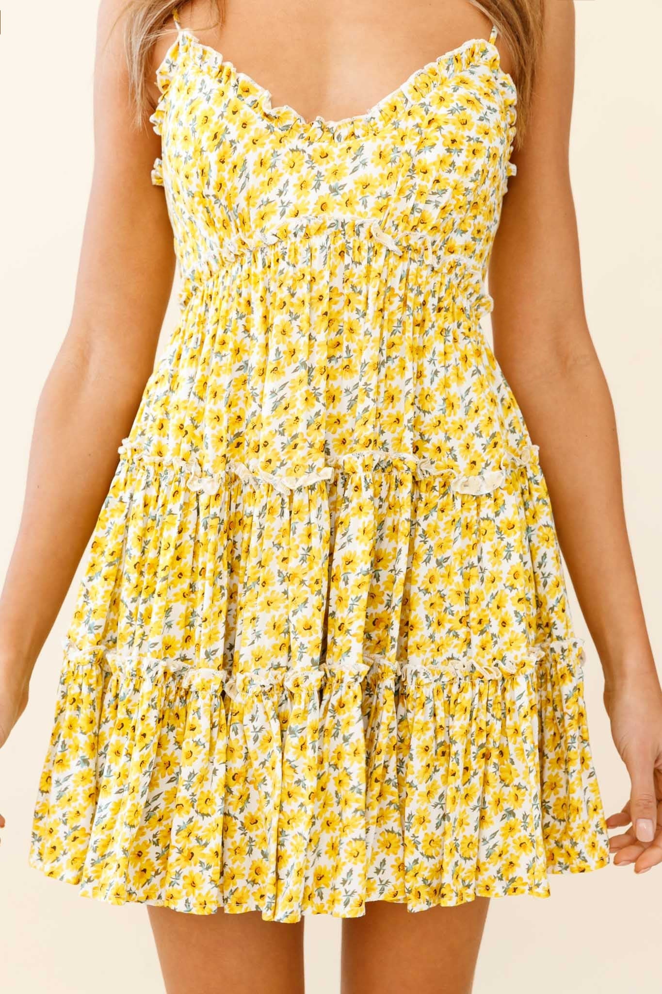 Twirl the day away in our super cute Buttercup dress. Perfect for a movie date or romantic picnic, it features a sweet babydoll style with frill trim details. Wear it with your fave mules and gold hoop earrings for a playful look.