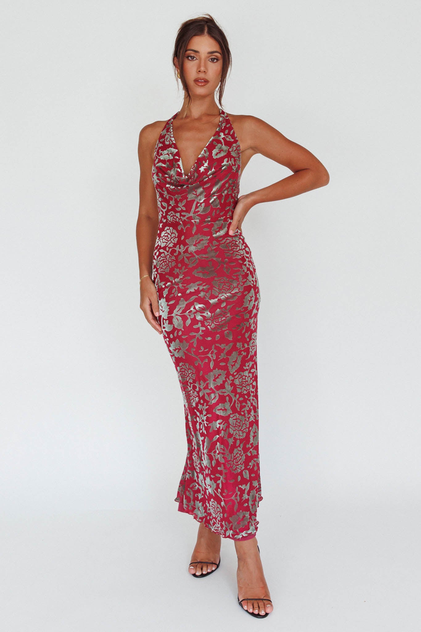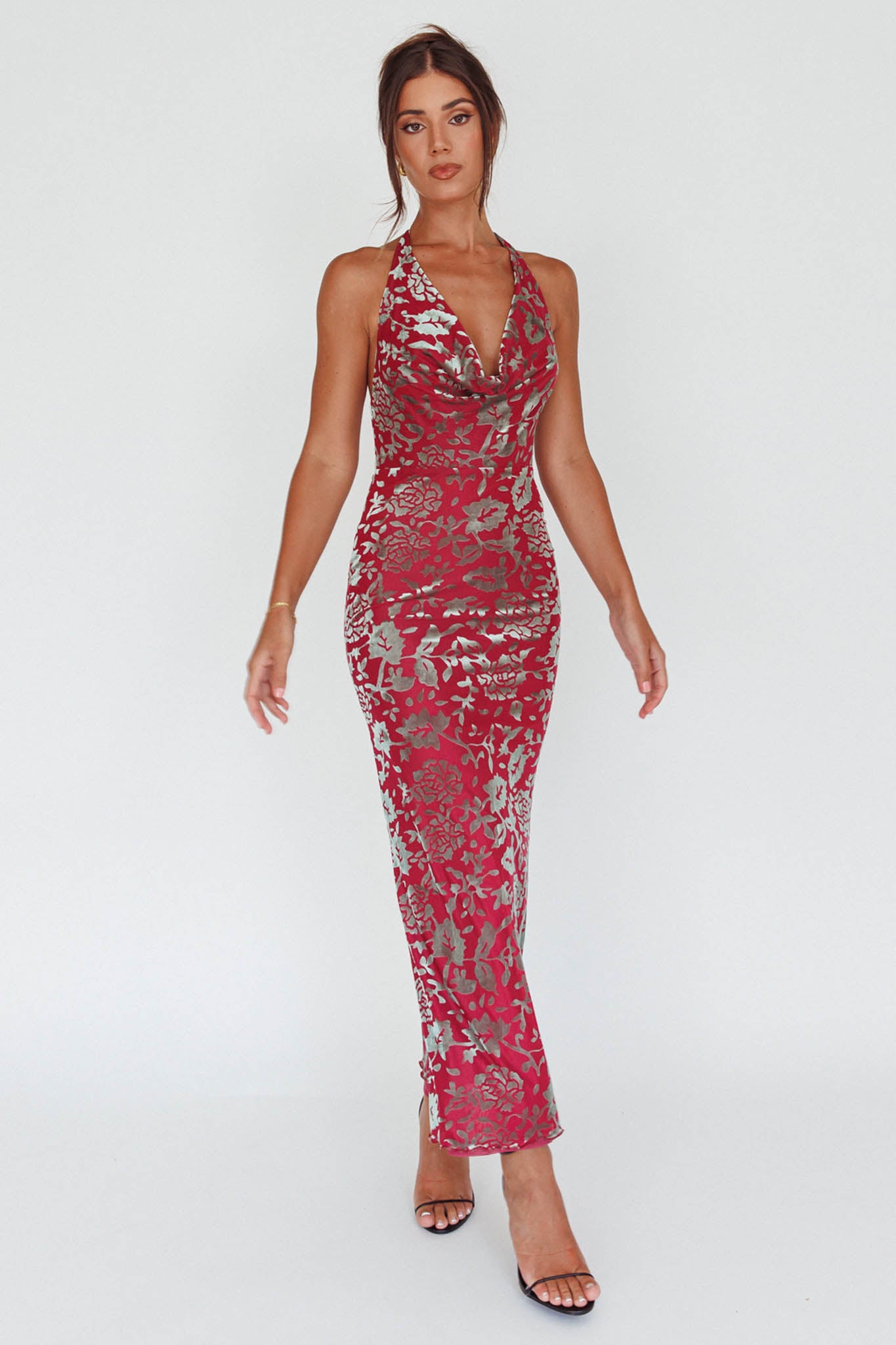 Jaws will drop when you strut by in our gorgeous Byzantine midi dress. Featuring a cowl neck and stretchy fabric to hug your curves. Perfect for a date night with your lover or special event! Team it with strappy heels and a clutch for an unforgettable look.