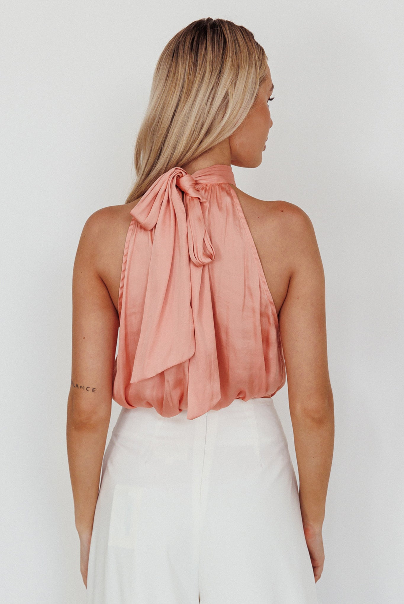 Make jaws drop in our chic Calisto satin top. We are obsessed with its bow tie detail in the back and sleeveless style. Perfect for a glam girls' night out. Team it with wide leg slacks and a purse for a look that will send you straight to the best-dressed list.