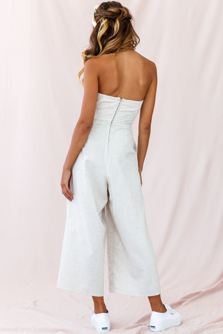 Call Me Wide-Leg Linen Bandeau Jumpsuit Beige
