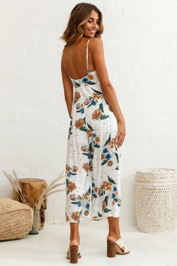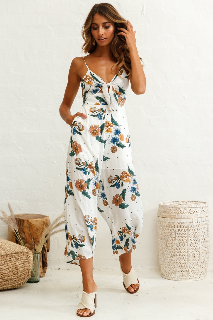 Call Me Wide-Leg Tied Bust Jumpsuit Floral Print White