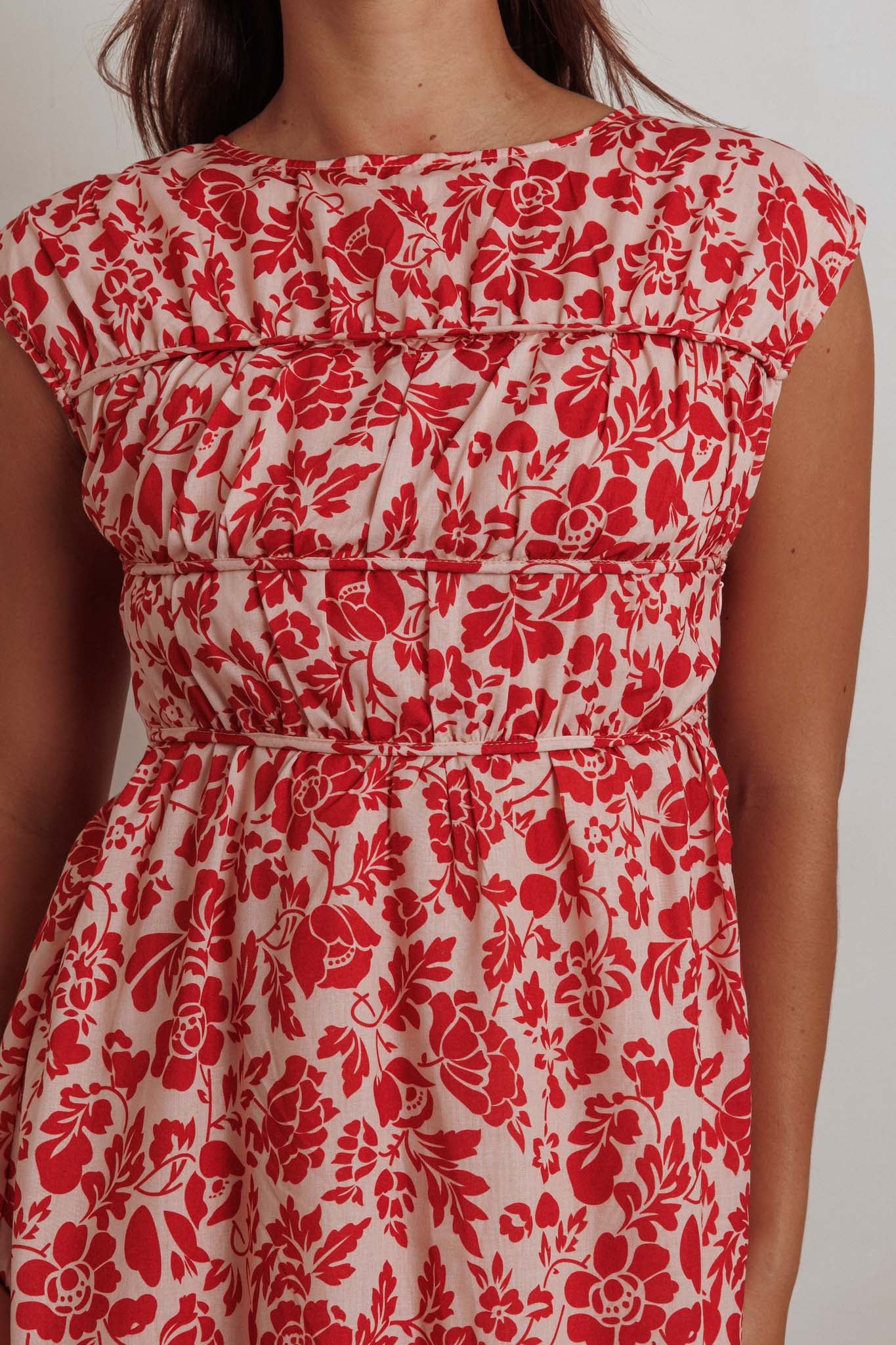Called Out Gathered Bodice Maxi Dress Floral Red