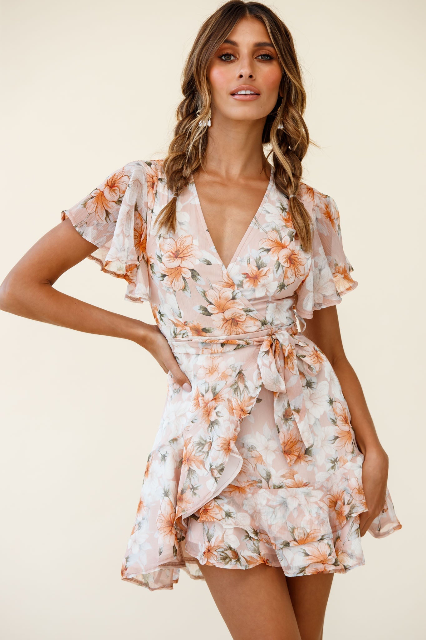 Hey pretty lady, you're causing quite the commotion in our sweet Cami dress! Featuring a faux wrap style and fluttery angel sleeves. Team it with delicate gold jewelry and nude heels and sashay your way across the dance floor, right in front of that hottie who's been staring at you all night.