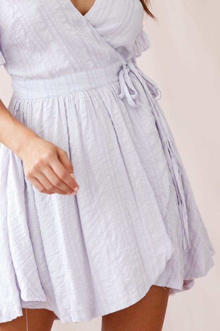 Cara Frill Trim Wrap Dress Stripe Print Lavender