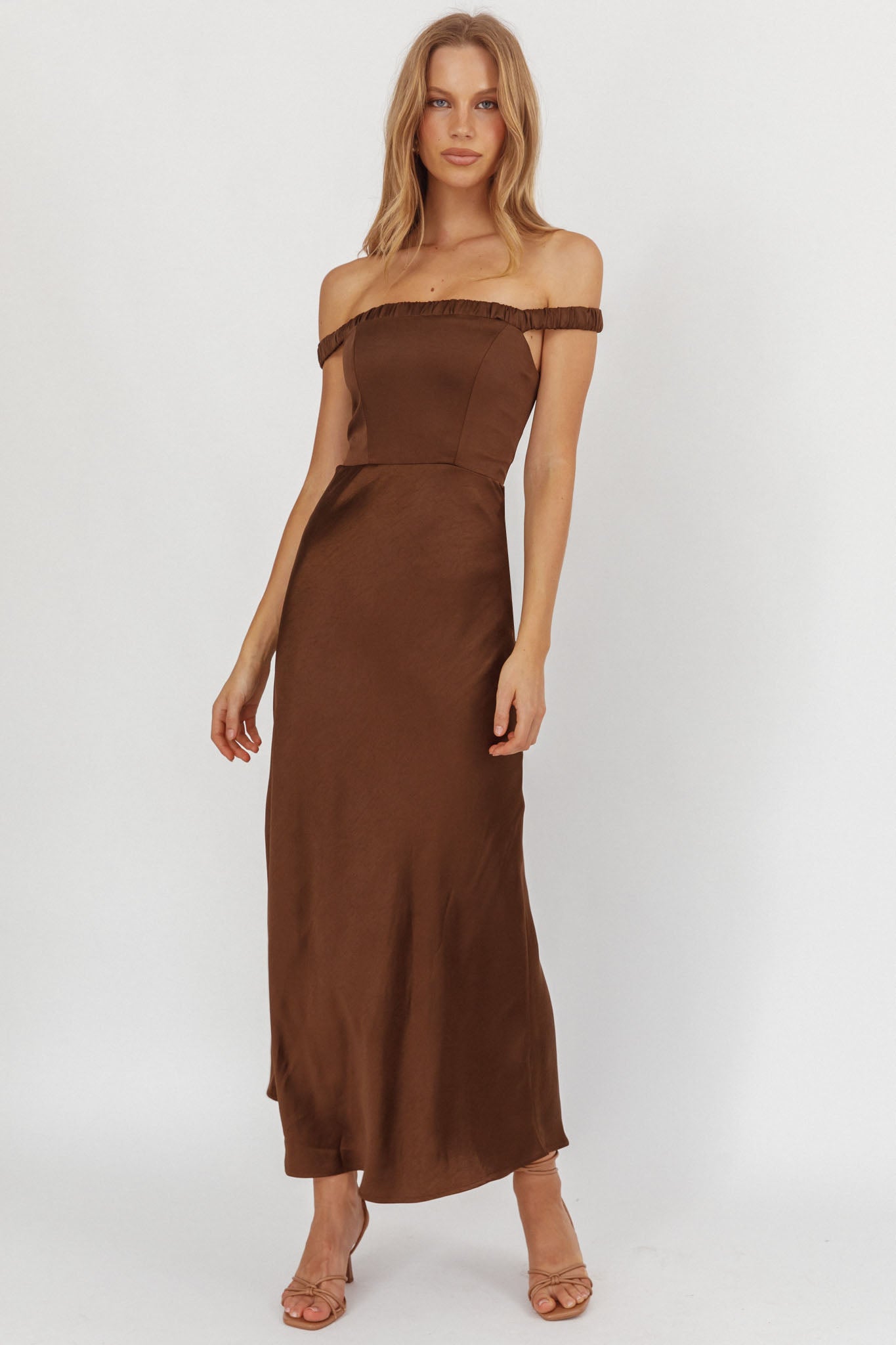 Cari Off-Shoulder Strap Maxi Dress Chocolate